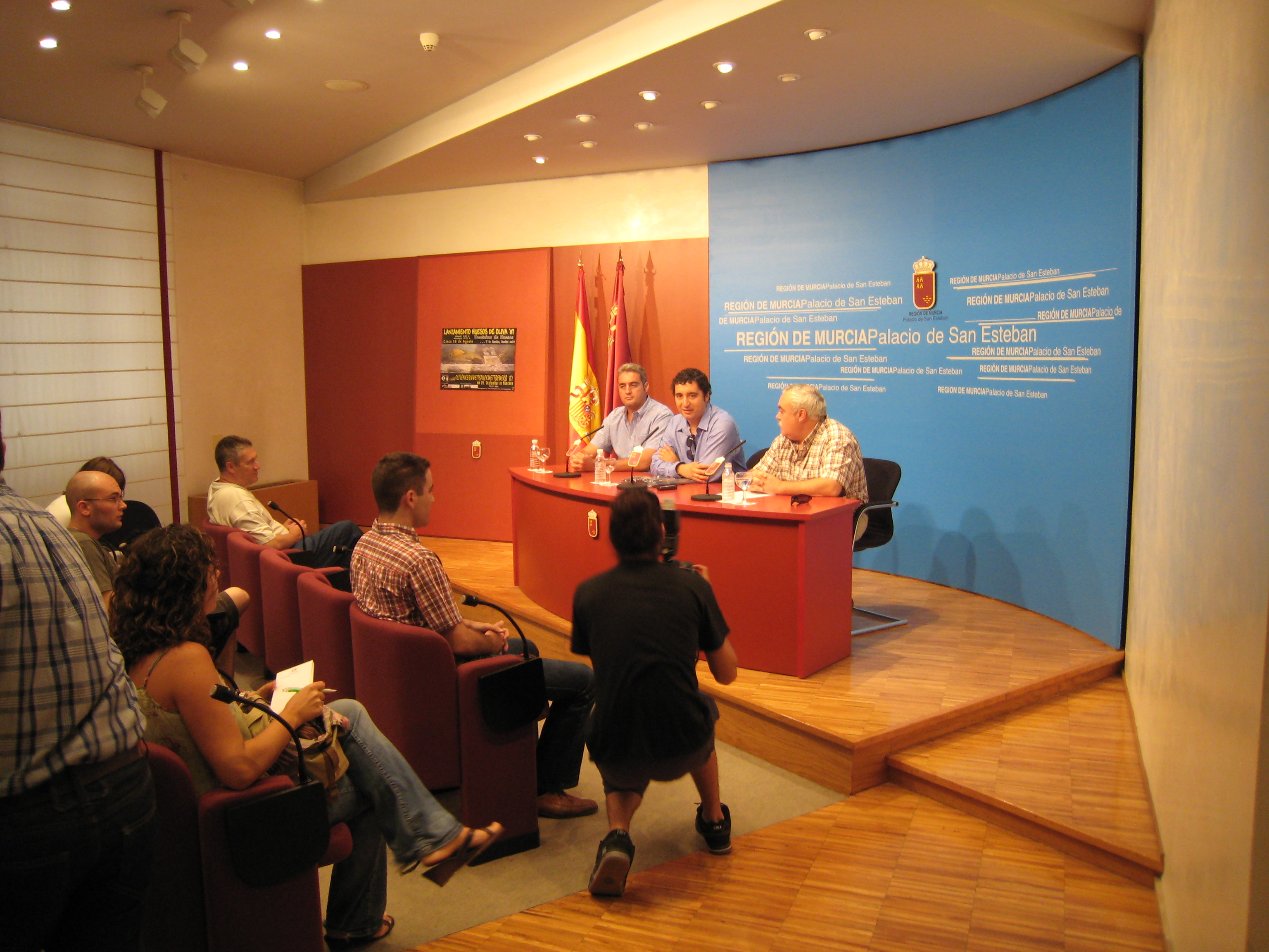 El consejero de Cultura, Juventud y Deportes, Pedro Alberto Cruz, durante la presentación del “XIII Campeonato de Lanzamiento de Hueso de Oliva” que tendrá lugar el próximo sábado en Cieza y a la que precederá el viernes 24 de agosto, la II MARATÓN+IVA DE LA OLIVA OLÍMPICA, en la que seis atletas recorrerán por relevos los 50 kilómetros que separan la ciudad de Murcia de Cieza.