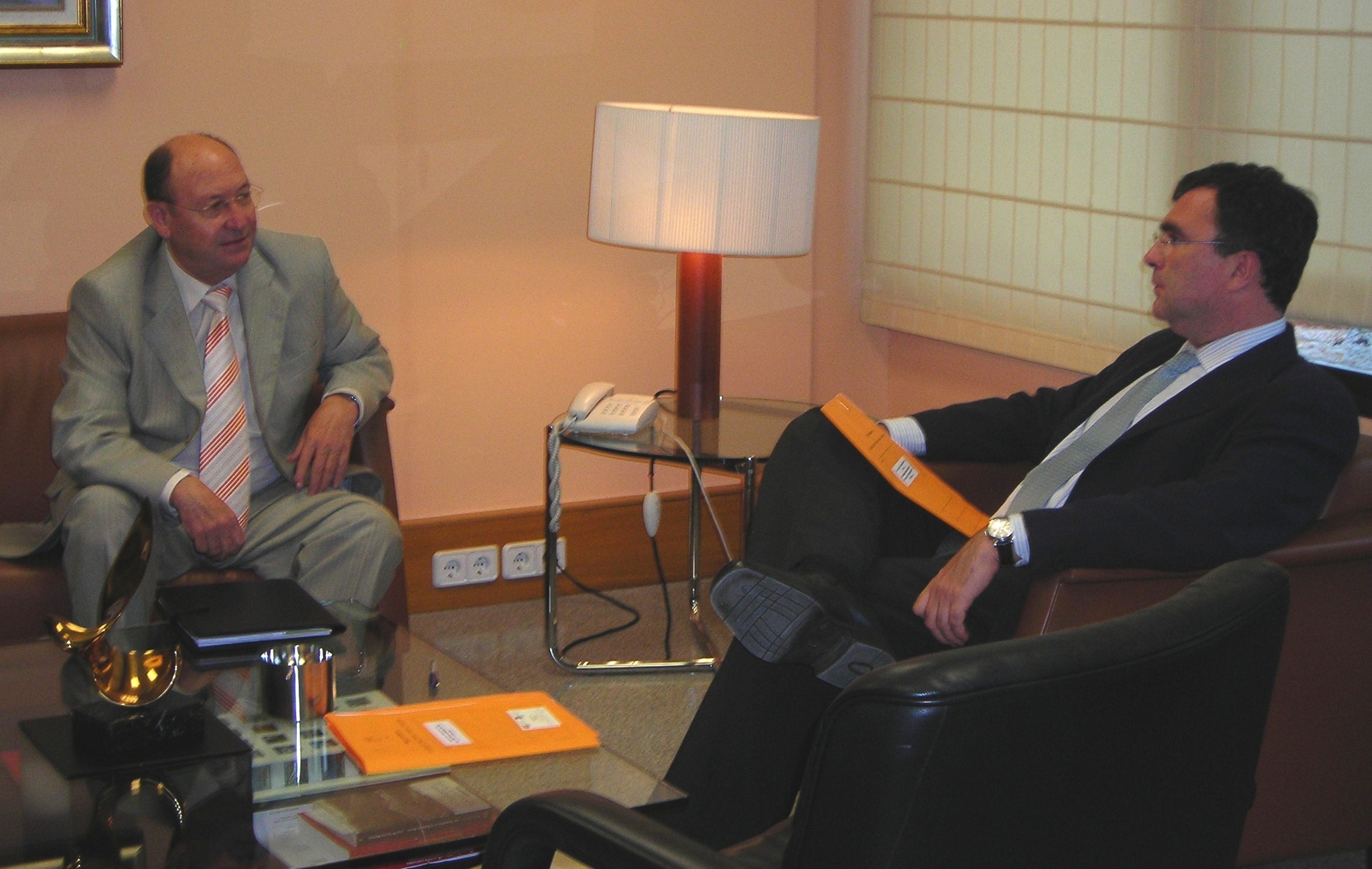 El consejero de Obras Públicas, Vivienda y Transportes, José Ballesta, recibió hoy al primer edil de Alhama de Murcia, Juan Romero.