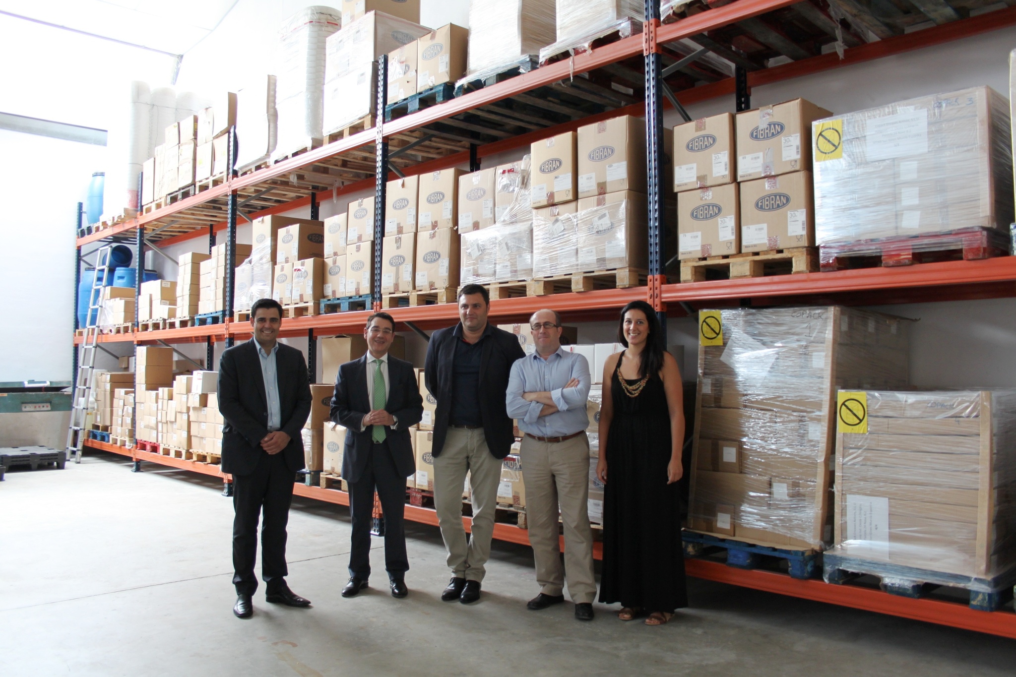 El consejero de Presidencia y Empleo, José Gabriel Ruiz, el director del SEF, el gerente de la empresa Copack Envases Activos SLU, Ángel Caravaca, y su equipo durante la visita a la empresa situada en el Polígono Industrial Oeste.