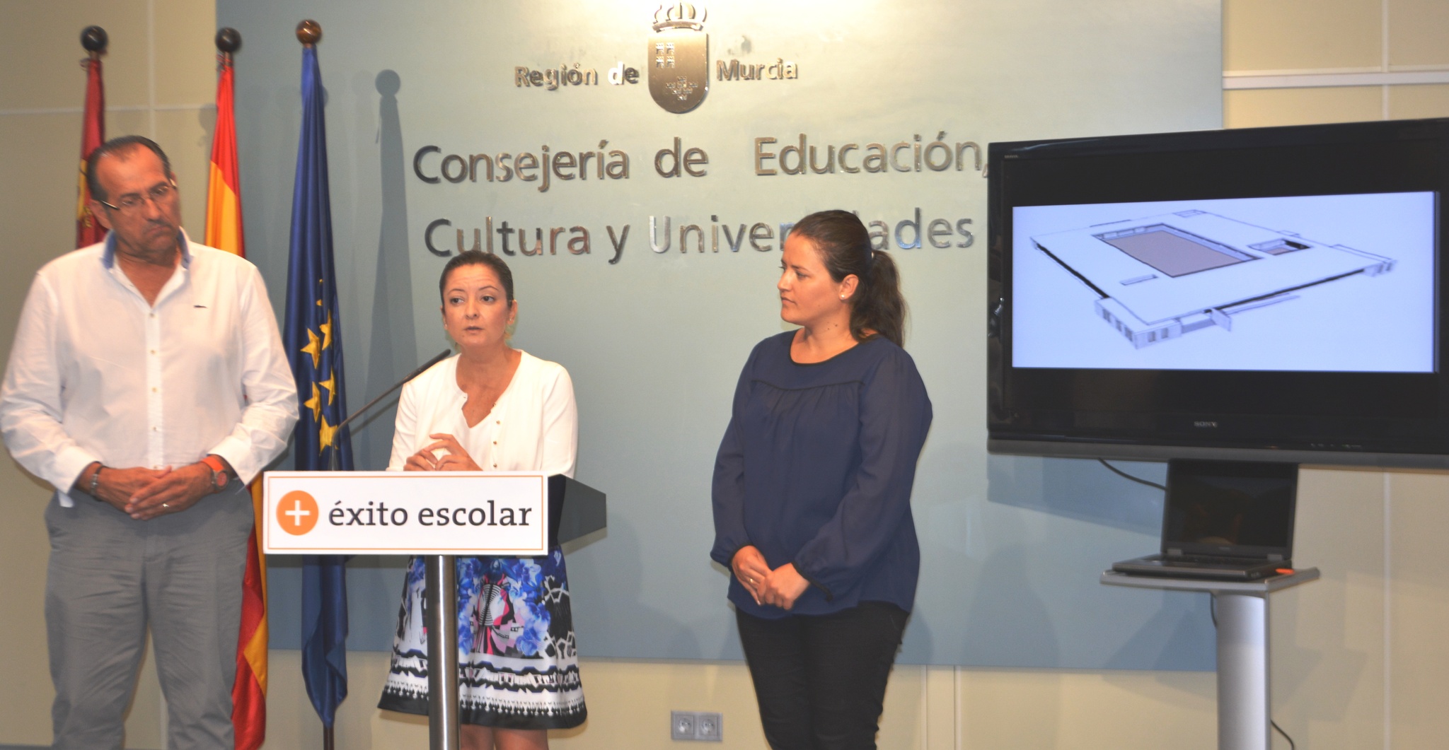 La directora general de Centros Educativos, María Dolores Valcárcel, la concejal de Educación de Murcia, María Dolores Sánchez, y el alcalde pedáneo de Guadalupe, José Mateos, presenta la ampliación del CEIP Virgen de Guadalupe.