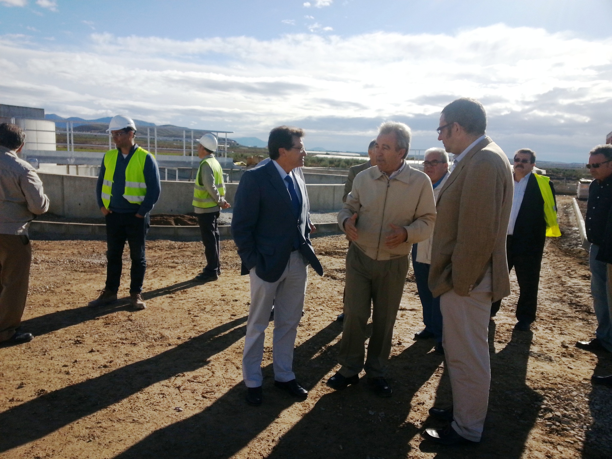 El consejero de Agricultura y Agua, Antonio Cerdá, y el alcalde de Lorca, Francisco Jódar, visitaron hoy las obras de la depuradora del río Turrilla.