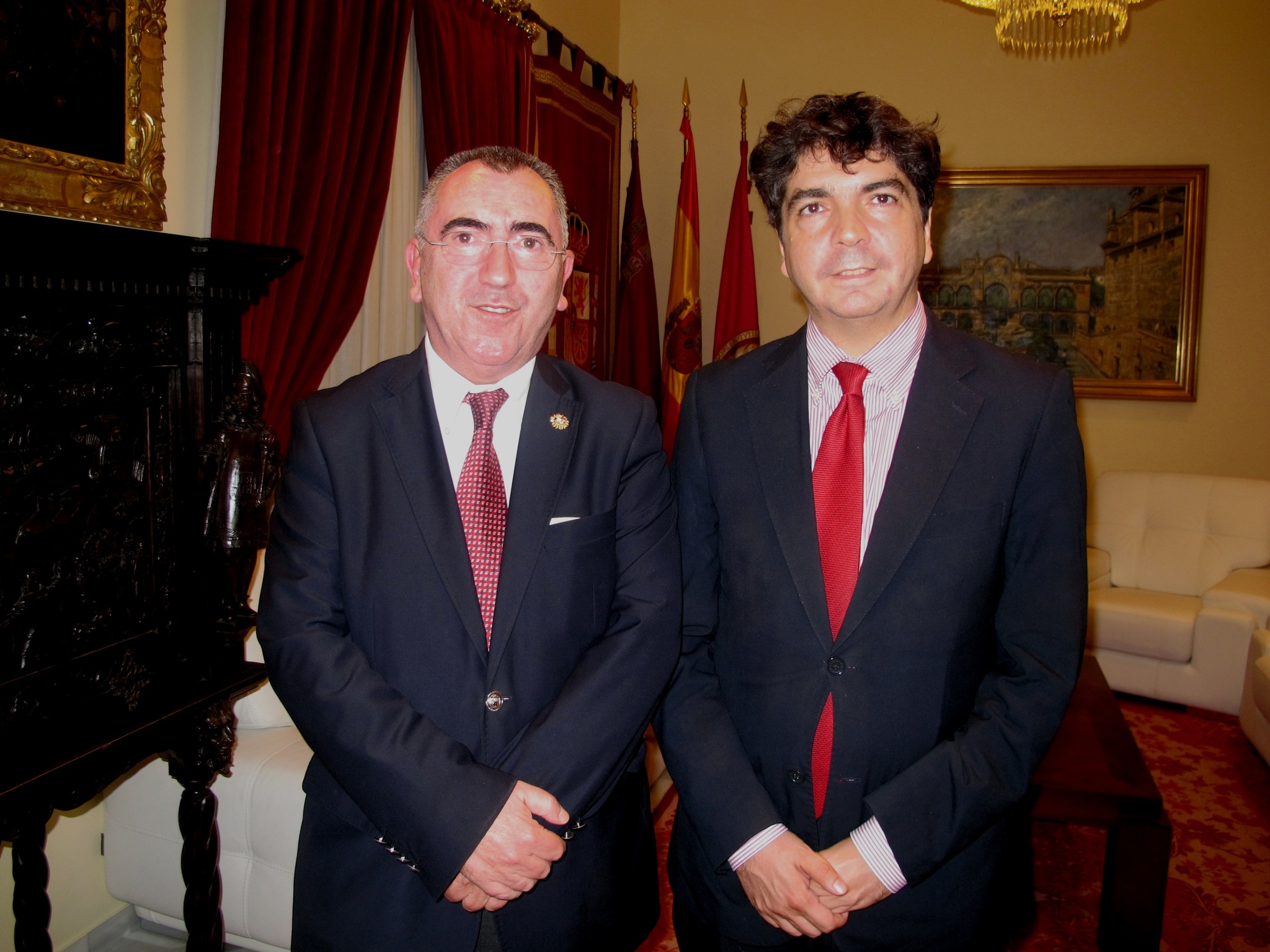 El consejero de Fomento, Obras Públicas y Ordenación del Territorio, Manuel Campos, y el subsecretario de Fomento, Mario Garcés, tras la firma del acuerdo de la Comisión Bilateral relativo al Área de Regeneración y Renovación Urbana de Lorca, que prevé una actuación en un total de 409 viviendas, de las que 335 viviendas consistirán en obras de rehabilitación y 74 viviendas de reconstrucción.