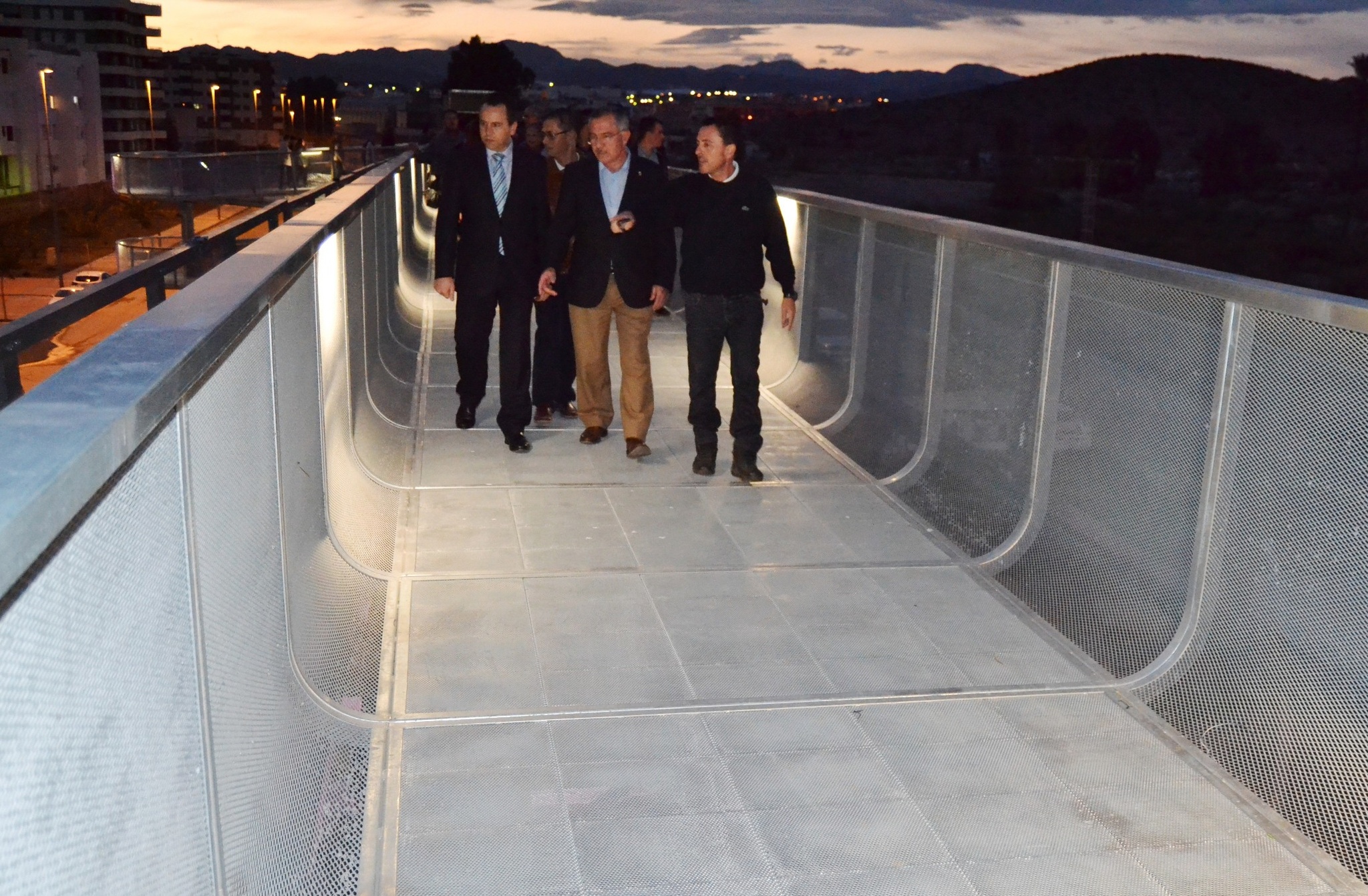 El director general de Administración Local y Relaciones Institucionales, José Antonio Blasco, el alcalde de Águilas, Bartolomé Hernández, y el resto de autoridades durante la inauguración de la restauración del puente de acceso al embarcadero de El Hornillo, de Águilas