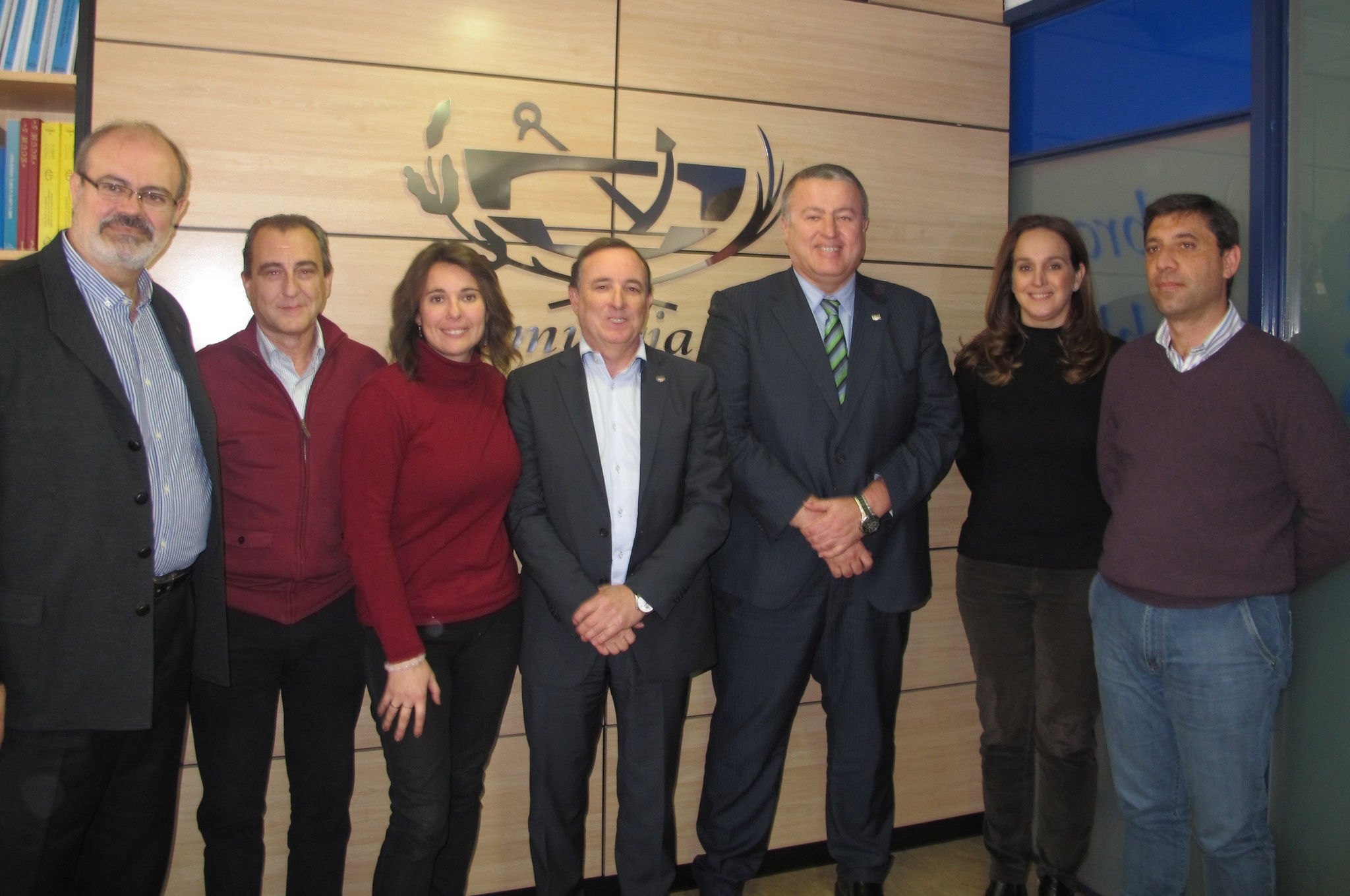 El consejero Francisco Bernabé y el decano Manuel Camacho, acompañados por miembros de la Junta de Gobierno.