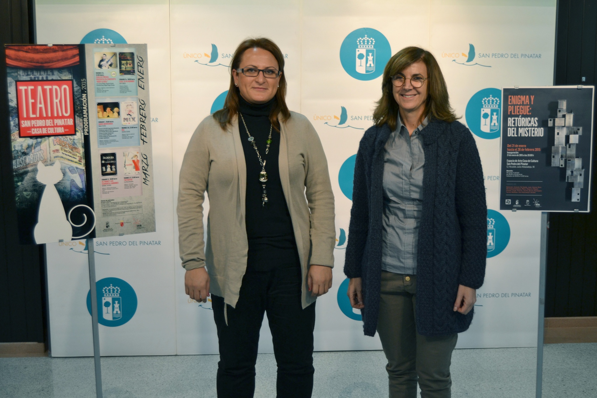 La directora general del ICA, Marta López-Briones, y la concejal de Cultura de San Pedro del Pinatar, Silvia Egea, presentan la exposición 'Enigma y pliegue'