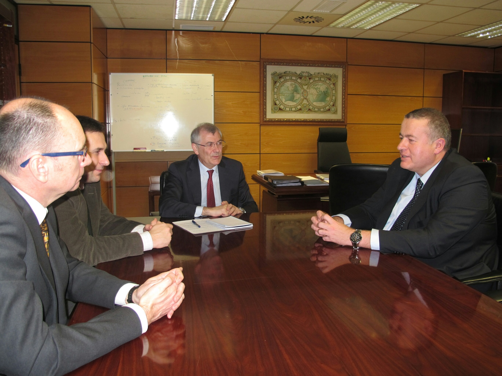 El consejero de Fomento, Obras Públicas y Ordenación del Territorio, Francisco Bernabé, se ha reunido hoy en Madrid con el subdirector general de Planificación de Infraestructuras y Transporte, Pascual Villate (2d).