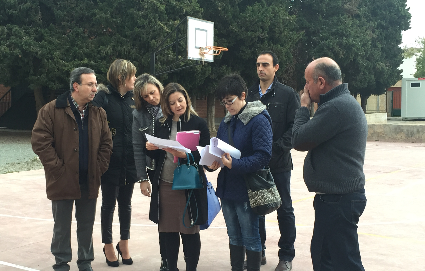 Imagen de la visita de la directora general de Centros Educativos, María Dolores Valcárcel, y la alcaldesa de Torre Pacheco, Josefa Marín, al colegio Virgen de los Dolores