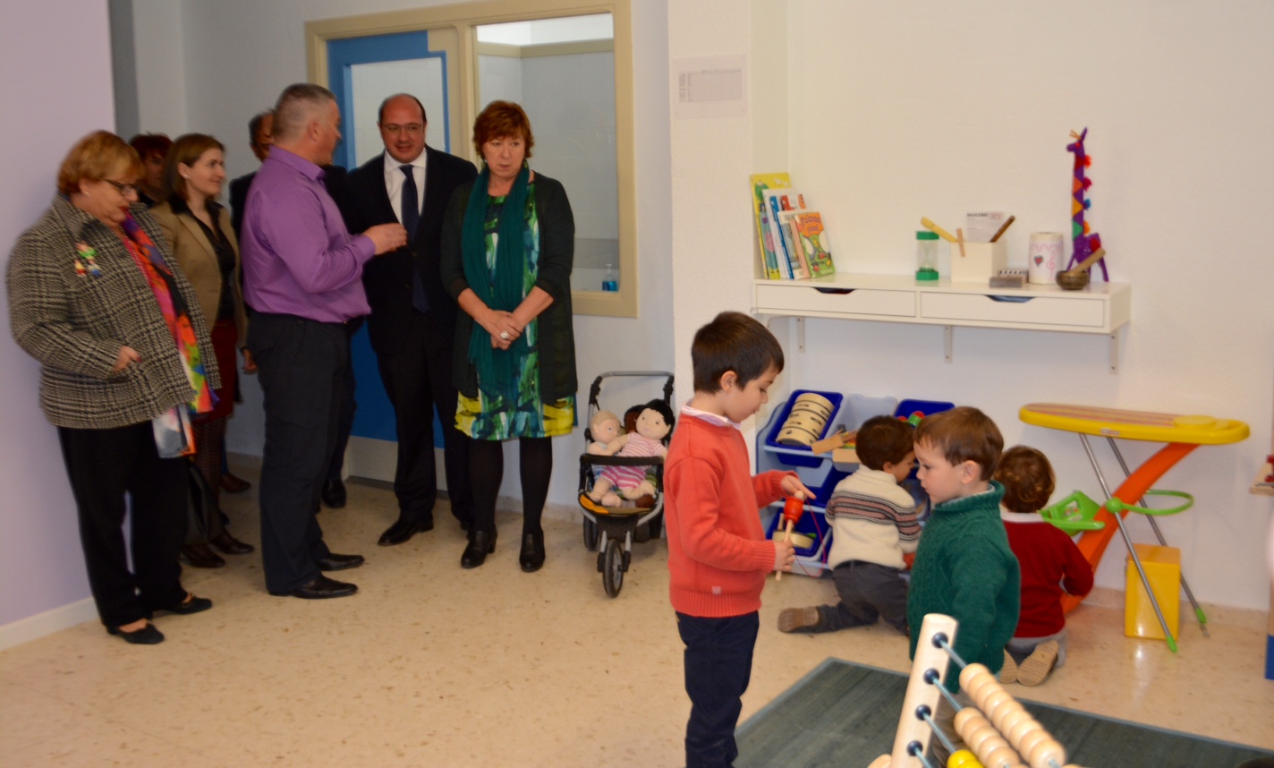 Imagen del consejero de Educación, Cultura y Universidades, Pedro Antonio Sánchez, y de la alcaldesa de Cartagena, Pilar Barreiro, en su visita al Colegio Peñas Blancas