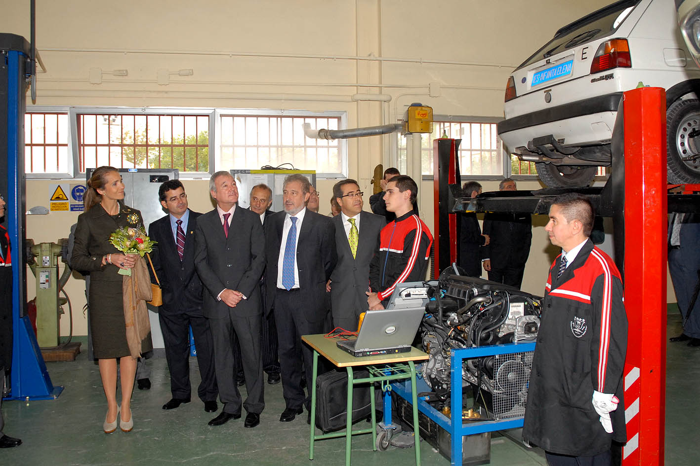 Imagen de la visita de su Alteza Real la Infanta Elena al IES de Jumilla que lleva su nombre. En la imagen, la infanta, junto con el presidente de la Comunidad, Ramón Luis Valcárcel, en uno de los talleres del centro.