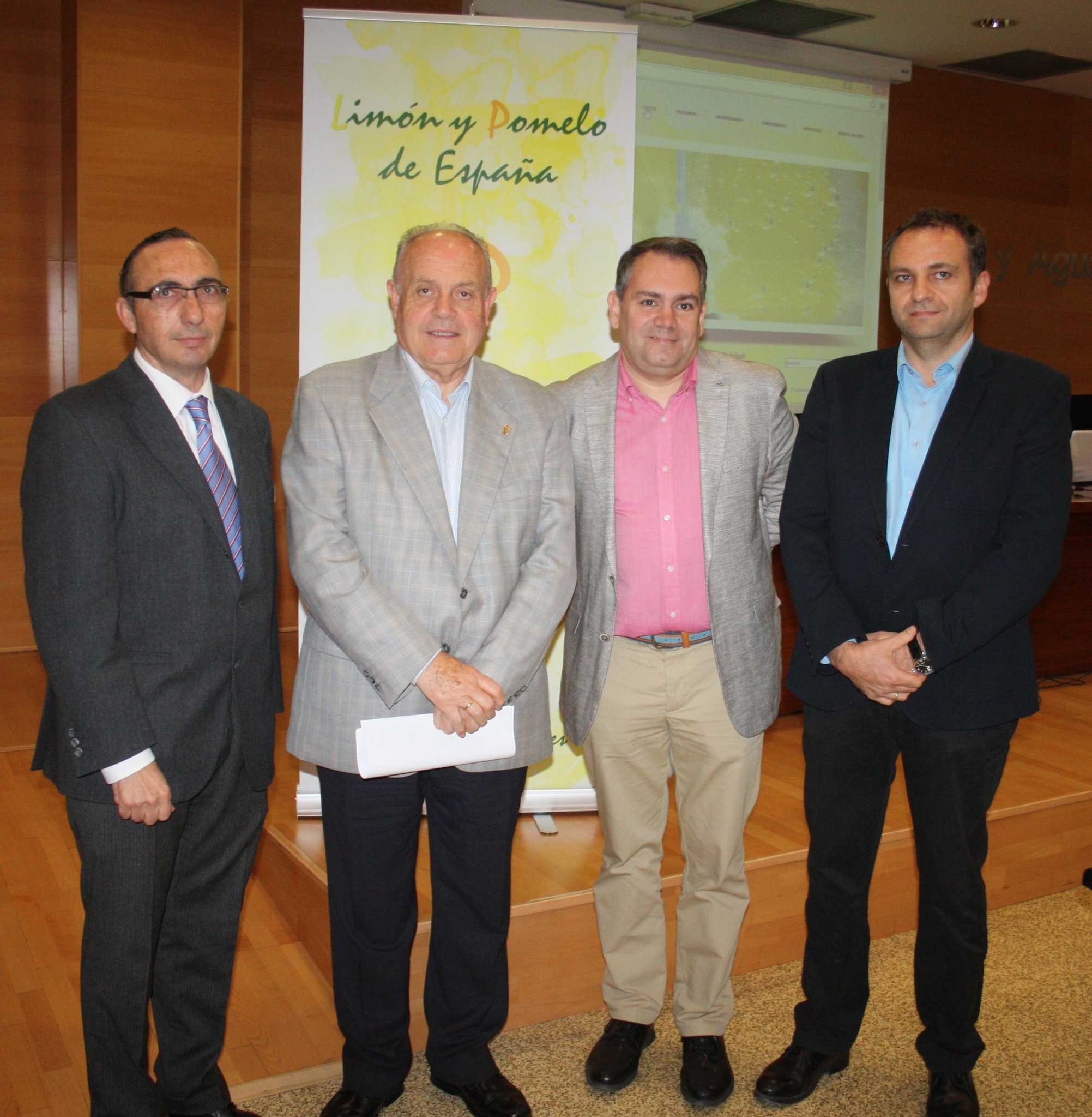 El director general, Ángel García Lidón, y el creador de la web, Francisco Seva, 2º y 3º por la izquierda, respectivamente.
