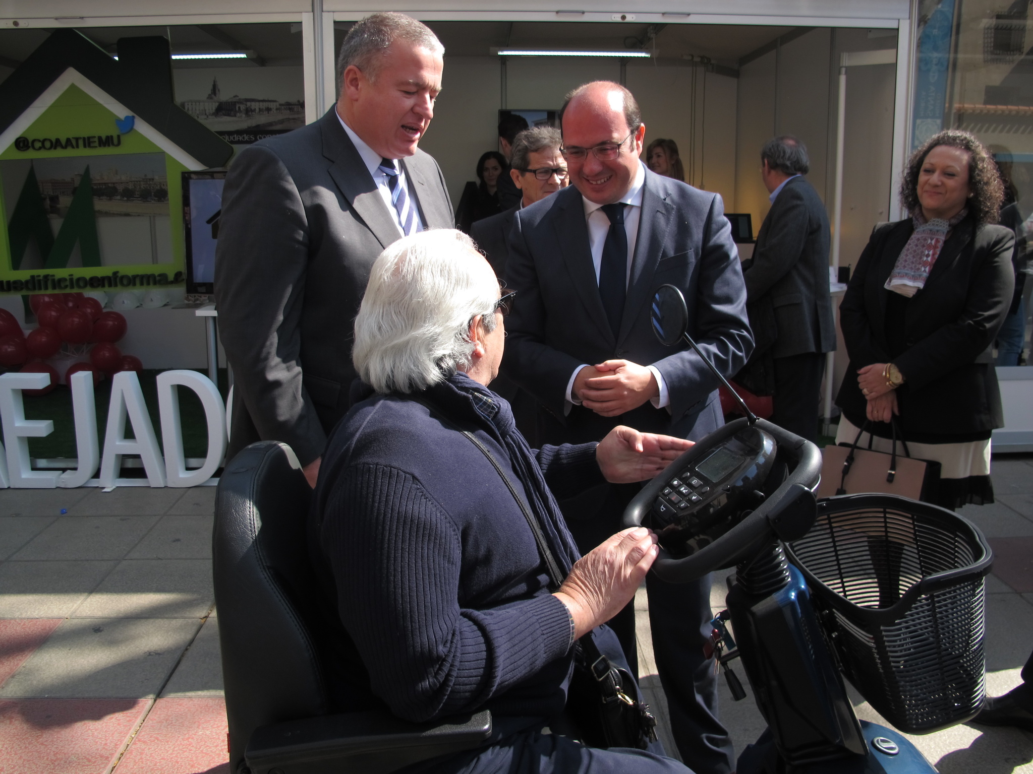 El consejero de Fomento, Francisco Bernabé, conversa con un ciudadano discapacitado.