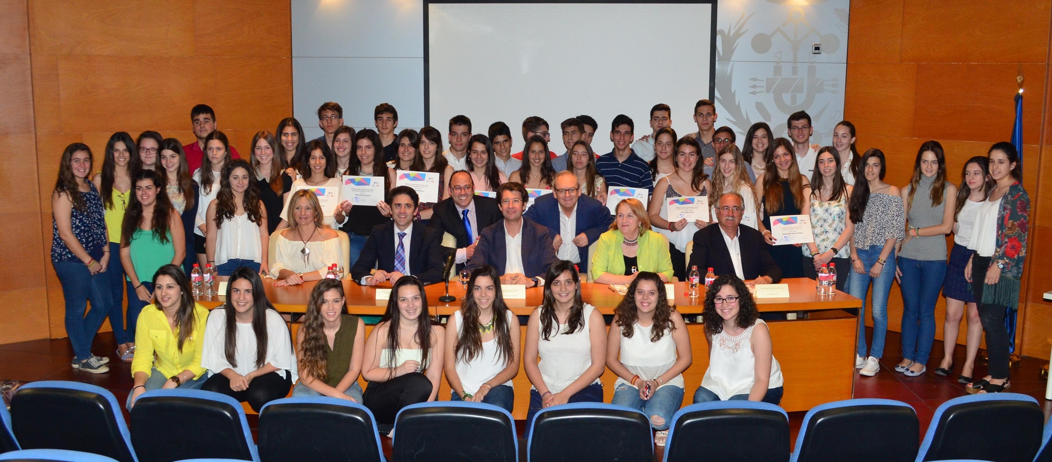 El consejero de Industria, Turismo, Empresa e Innovación, Juan Carlos Ruiz, con todos los participantes en los Premios de Investigación de Bachillerato del colegio Santa María de la Paz de Murcia.