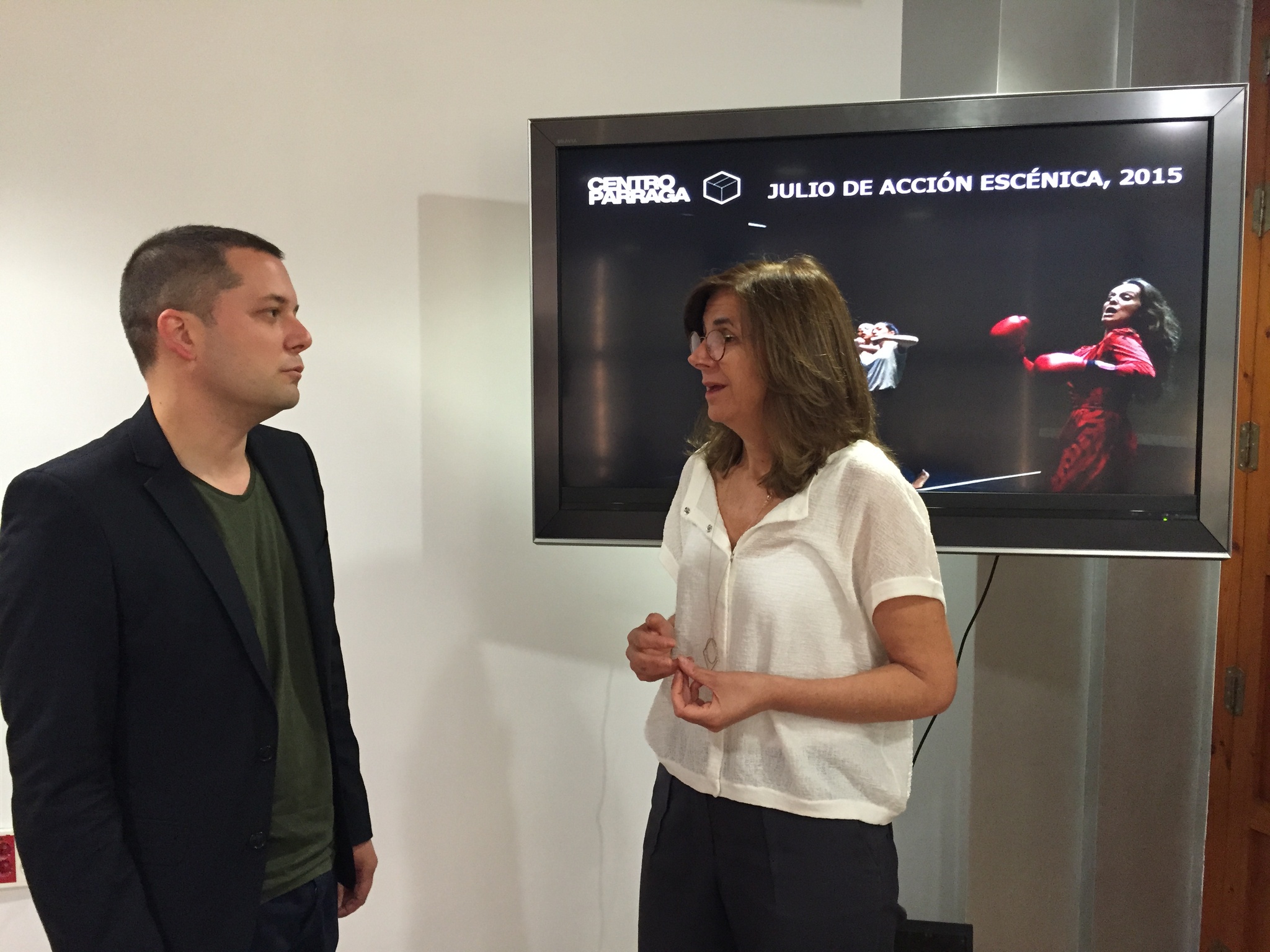 La directora general del ICA, Marta López-Briones, y el responsable del Centro Párraga, Sergio Porlán, en la presentación de los talleres.