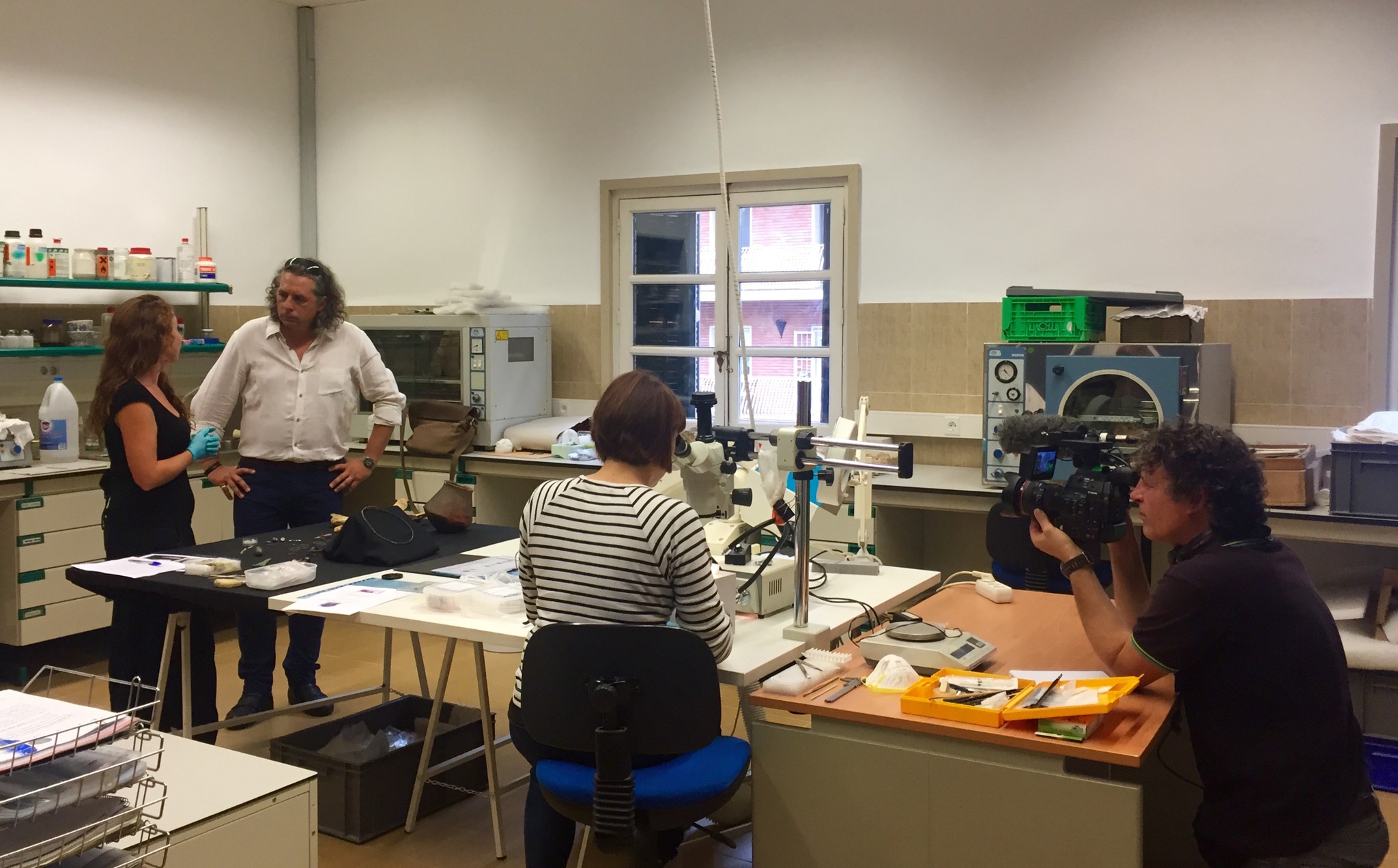 Parte del equipo del canal ARTE, durante la grabación realizada en el Museo Arqueológico de Murcia.