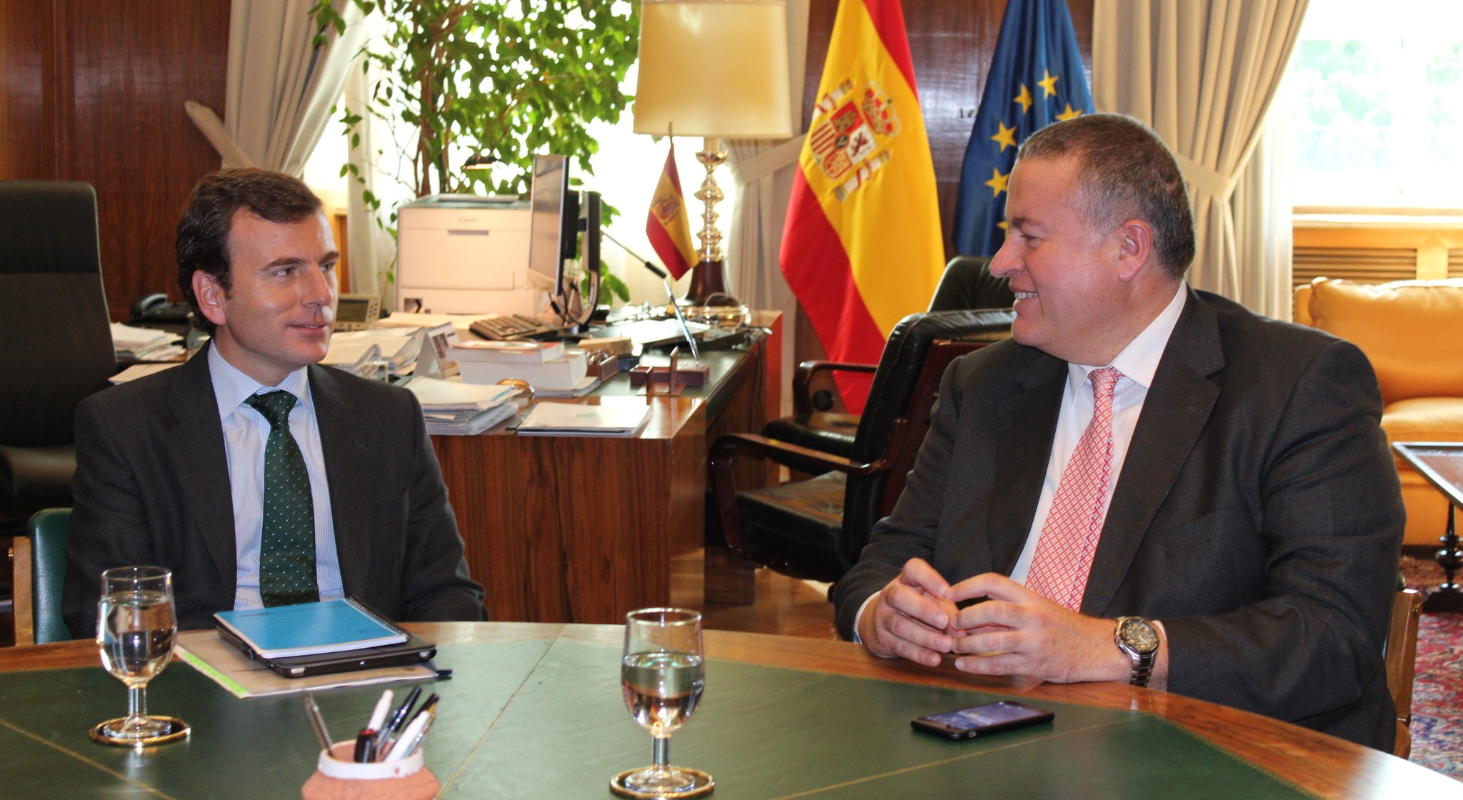 El consejero de Fomento e Infraestructuras, Francisco Bernabé, y el secretario de Estado de Medio Ambiente, Pablo Saavedra, durante una reunión que mantuvieron recientemente en el Ministerio de Agricultura, Alimentación y Medio Ambiente.