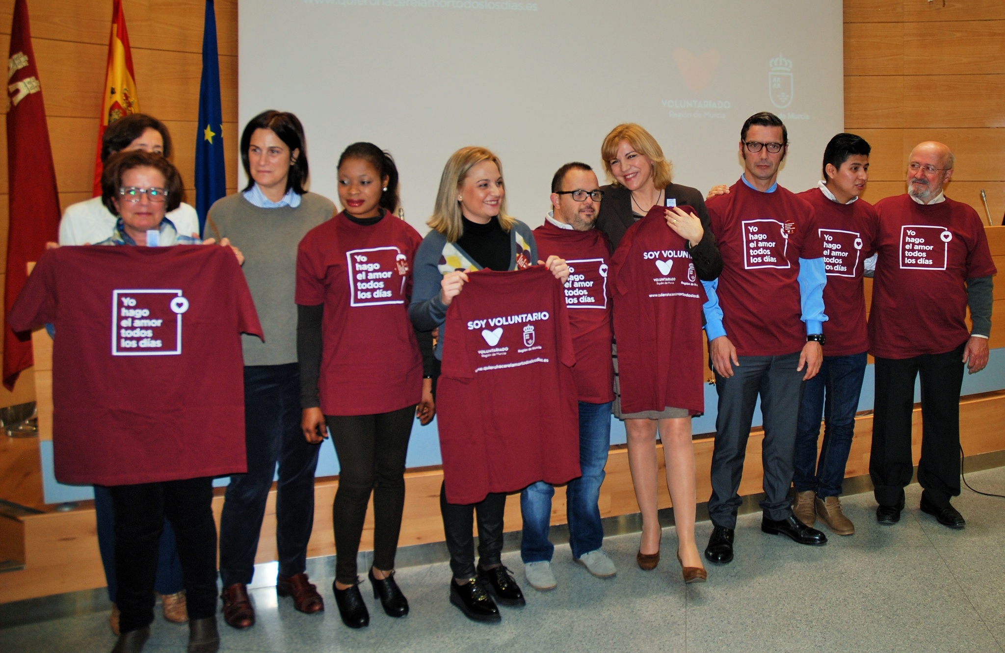 De izquierda a derecha: María del Carmen (voluntaria Cruz Roja), Ana Sánchez (Subdirectora de Cáritas), Eunice Osagiede (Voluntaria de ACCEM), Verónica López (Directora General de Familia y Políticas Sociales), José María Moreno (Plena Inclusión), Violante Tomás (Consejera de Familia e Igualdad de Oportunidades), Cristian Echeverría (voluntario Cruz Roja) Francisco Estrada (Cruz Roja).