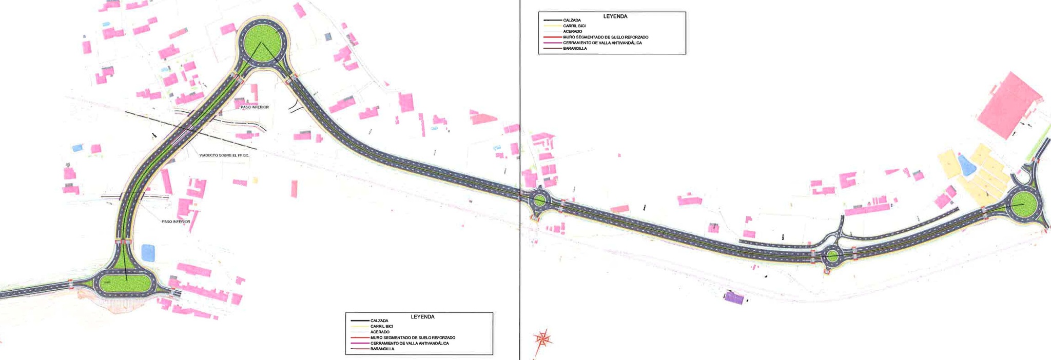 Trazado del primer tramo de la Ronda Sur Central, que tiene dos subtramos claramente diferenciados.