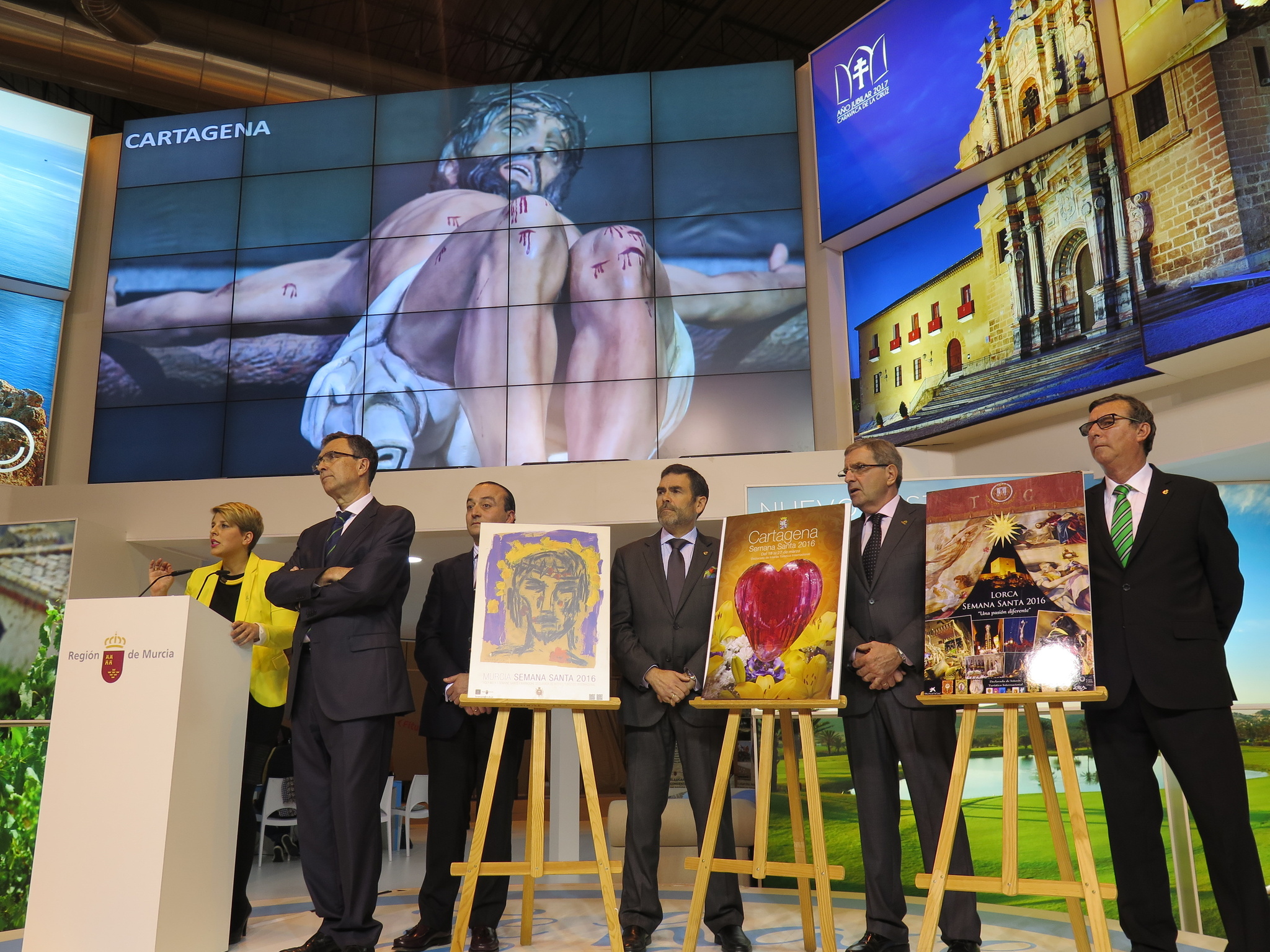 La consejera de Cultura y Portavocía, Noelia Arroyo ha presentado en Fitur la Región como un destino cultural preferente para vivir una experiencia vacacional única en Semana Santa, en un acto que contó con la presencia del consejero de Desarrollo Económico, Turismo y Empleo, Juan Hernández, los alcaldes y ediles de las tres localidades y representantes de las cofradías de los municipios.