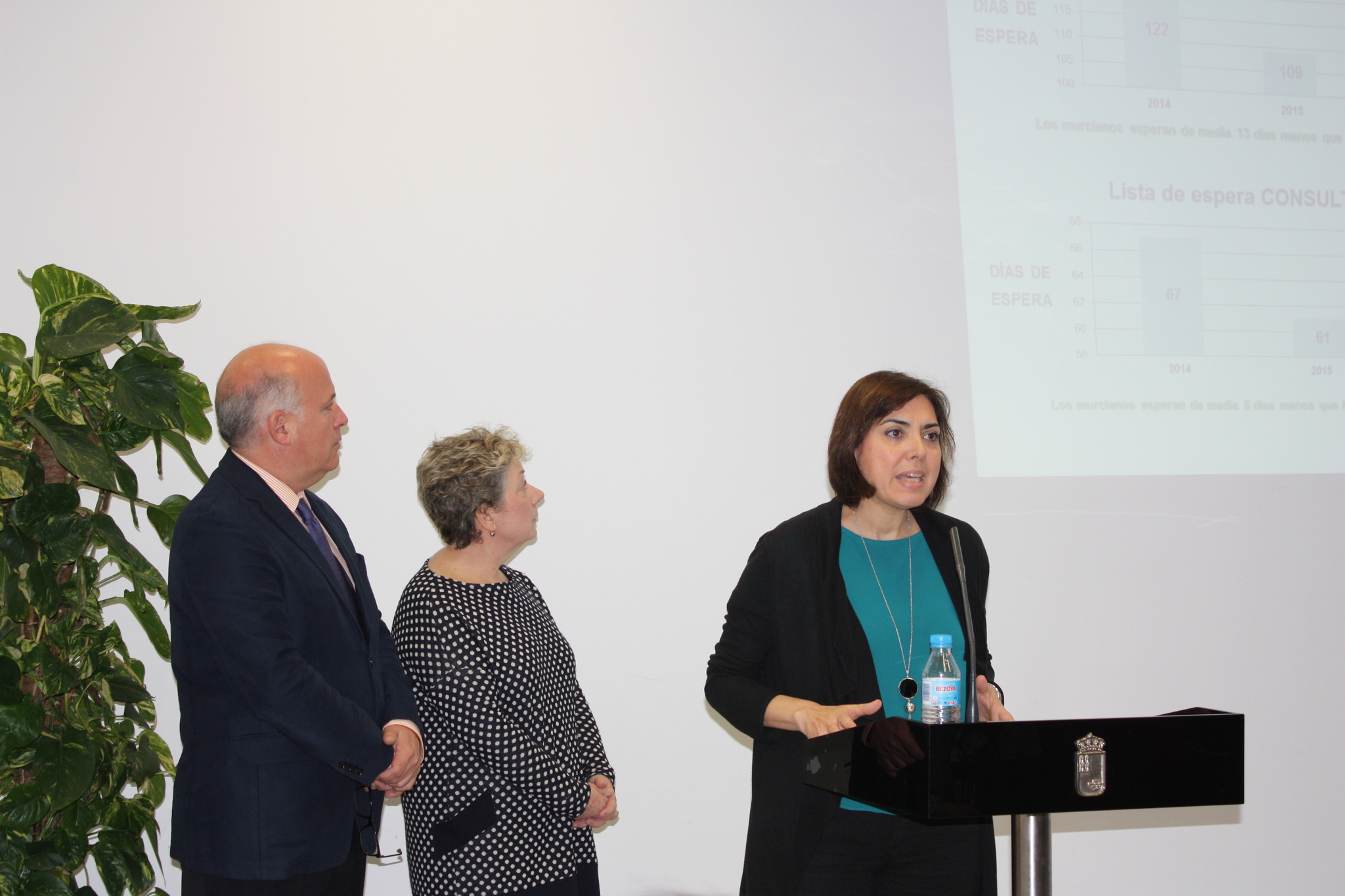 La consejera de Sanidad, Encarna Guillén, durante la rueda de prensa ofrecida para dar a conocer los datos relativos a la Lista de Espera de diciembre de 2015.
