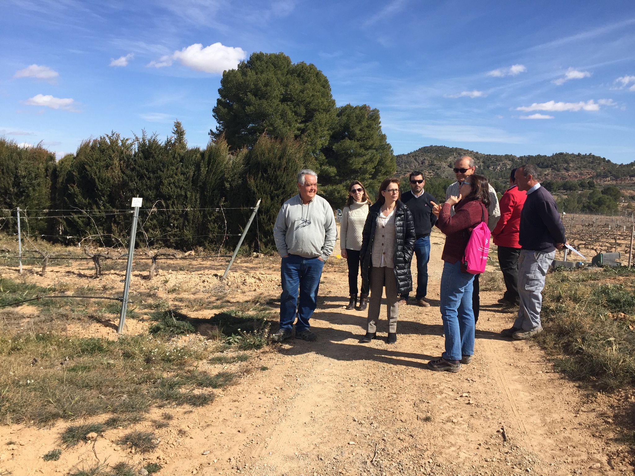 La directora general de Innovación Agroalimentaria, Juana Mulero (centro), visita la finca de transferencia El Chaparral en Cehegín, junto a técnicos de la Consejería y concejales del Ayuntamiento de Cehegín.