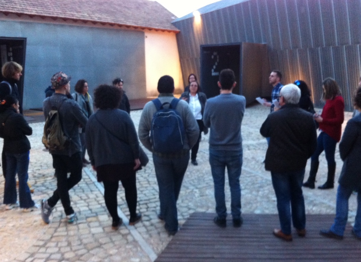 Asistentes a una de las visitas guiadas en La Conservera y visitantes que observan las obras expuestas en 'Gramáticas de la temporalidad'