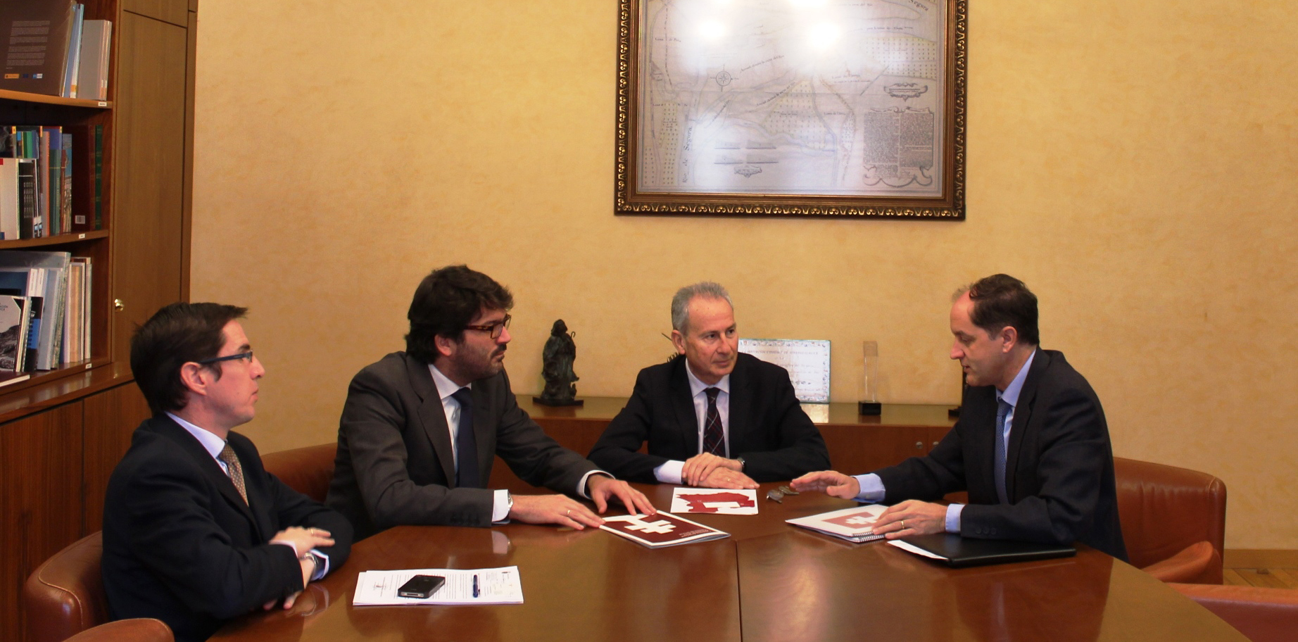 El director general del Instituto de Turismo, Manuel-Fernández-Delgado, durante la reunión que mantuvo esta semana con el presidente de la CHS, Miguel Ángel Ródenas, para cooperar en la señalización el Camino de la Cruz de Caravaca a su paso por la mota del río