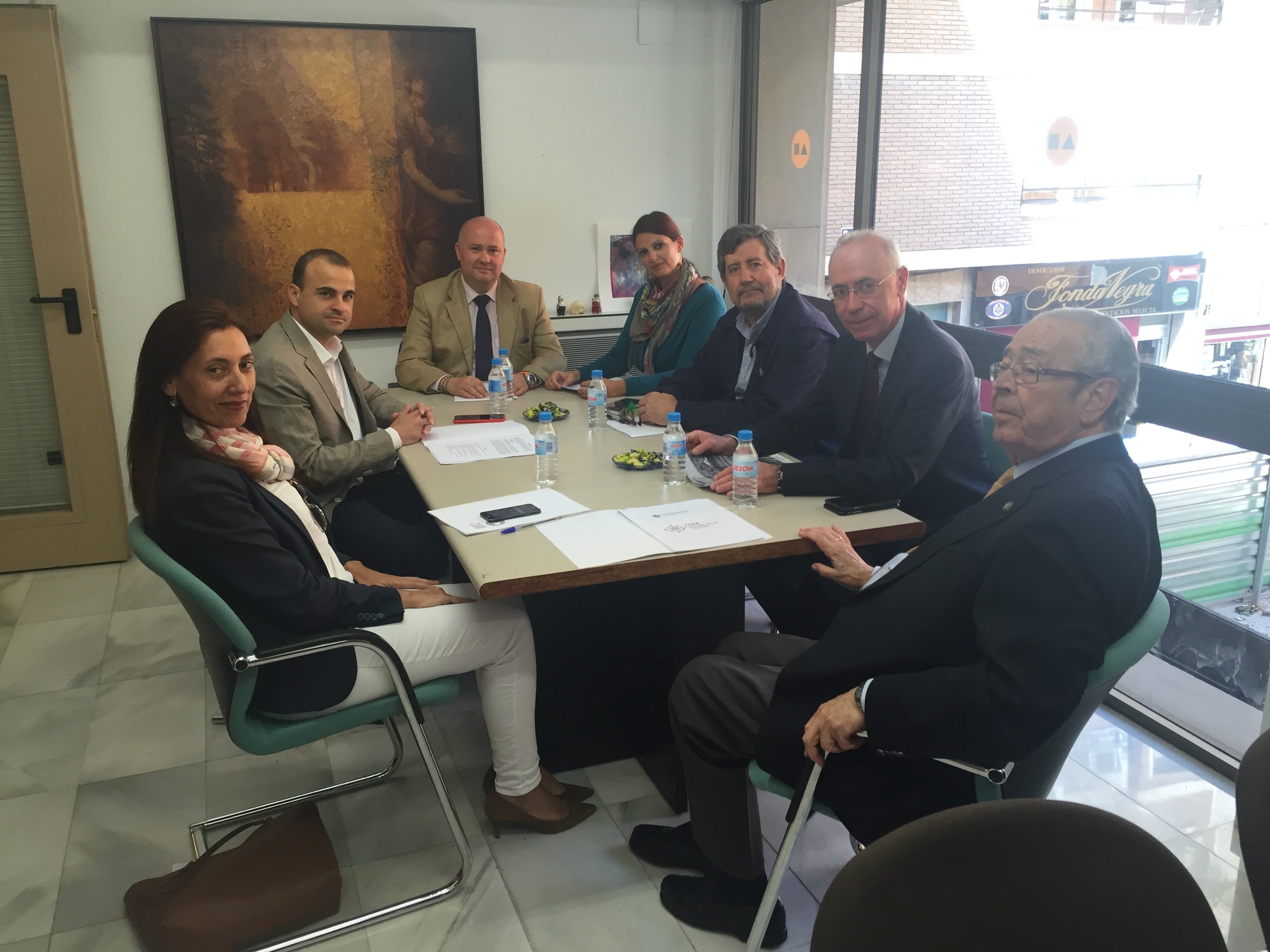 La directora general de Calidad y Evaluación Ambiental, Encarnación Molina (primera izquierda), el director general de Desarrollo Rural y Forestal, Federico García Izquierdo (segundo izquierda), el director de la Oficina de Impulso Socioeconómico del Medio Ambiente, Juan Madrigal (tercero derecha), el vicepresidente de la Fundación Caja Mediterráneo, Clemente García (primero derecha), el director territorial de la obra social, Antonio Rubira (tercero izquierda), el concejal de Urbanismo, Medio Ambiente y Huerta del Ayuntamiento de Murcia, Antonio Navarro (segundo derecha) y la responsable del CEMA, Silvana Ruipérez (cuarta derecha), durante el encuentro para concretar actividades y proyectos para llevar a cabo en el CEMA de Torre Guil de la Fundación Caja Mediterráneo.