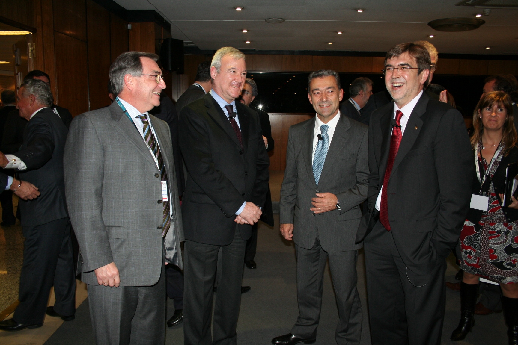 El presidente de la Comunidad, Ramón Luis Valcárcel, junto con el presidente del Gobierno Balear, Francés Antich, el presidente del Gobierno Canario, Paulino Ribero, y el consejero de Turismo, José Pablo Ruiz Abellán, en l IV Foro de Liderazgo Turístico de Exceltur.