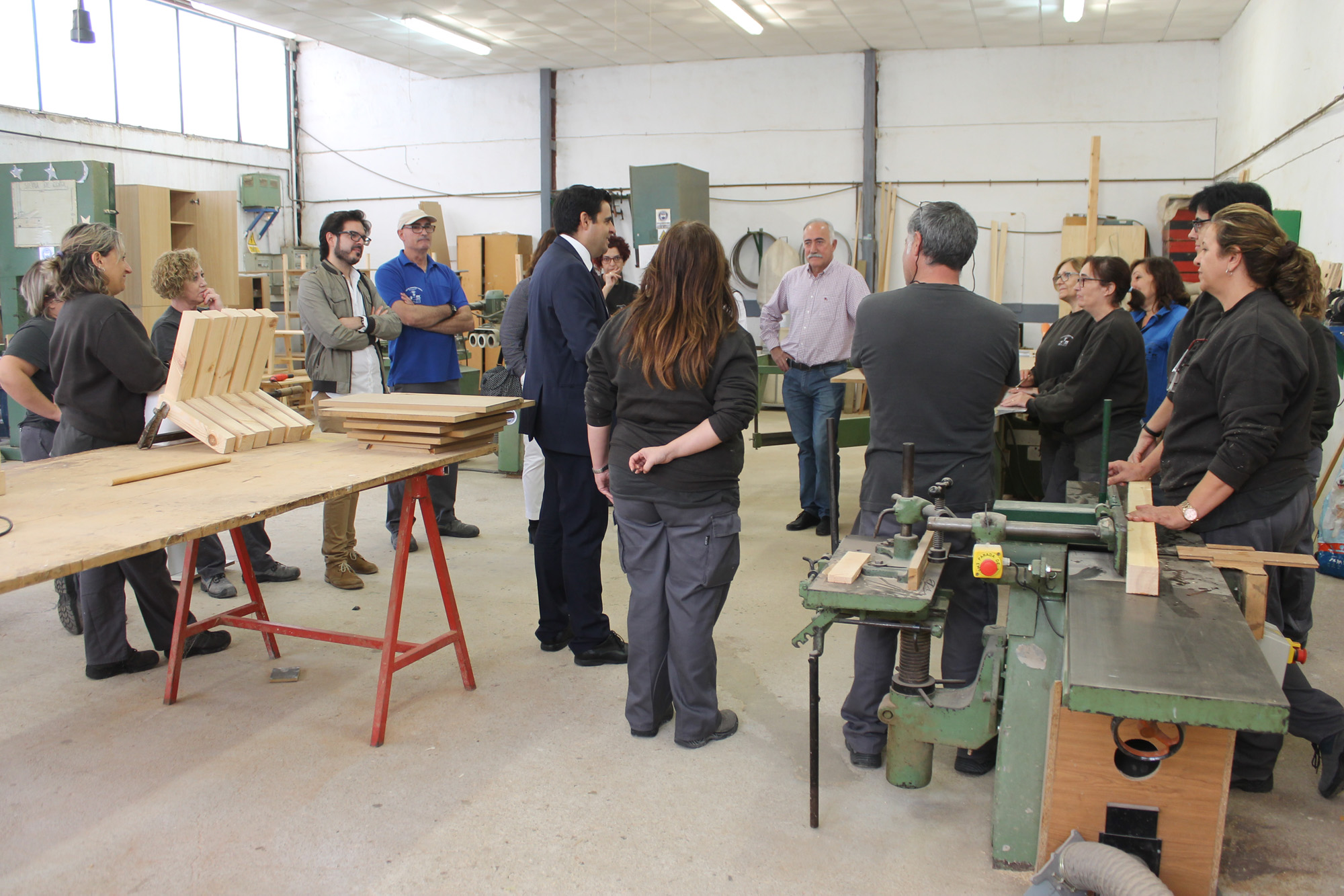 El director general del SEF, Alejandro Zamora, visitó hoy en Bullas junto a la alcaldesa del municipio, María Dolores Muñoz, el programa mixto de empleo y formación que está permitiendo que 15 desempleados de entre 25 y 54 años de la localidad alternen la formación y la experiencia profesional remunerada en labores de carpintería. En concreto, las actuaciones se concentran en realizar trabajos para el adecuado funcionamiento y mantenimiento de las instalaciones públicas municipales. Zamora destacó durante su visita que “el empleo arroja datos muy positivos en Bullas como, por ejemplo, que el paro entre los menores de 25 años ha bajado un 17 por ciento en un año, pasando de 123 a 102 desempleados”. Asimismo, el director del SEF subrayó que "el número de afiliados a la Seguridad Social en el municipio ha subido más de un 3 por ciento con respecto a septiembre de 2015, lo cual es una gran noticia".