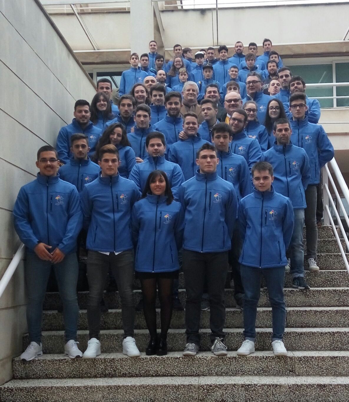El director general de Deportes, Alonso Gómez (c), junto a los deportistas que se encuentran trabajando en el CAR de Los Narejos y los presidentes de sus respectivas federaciones.