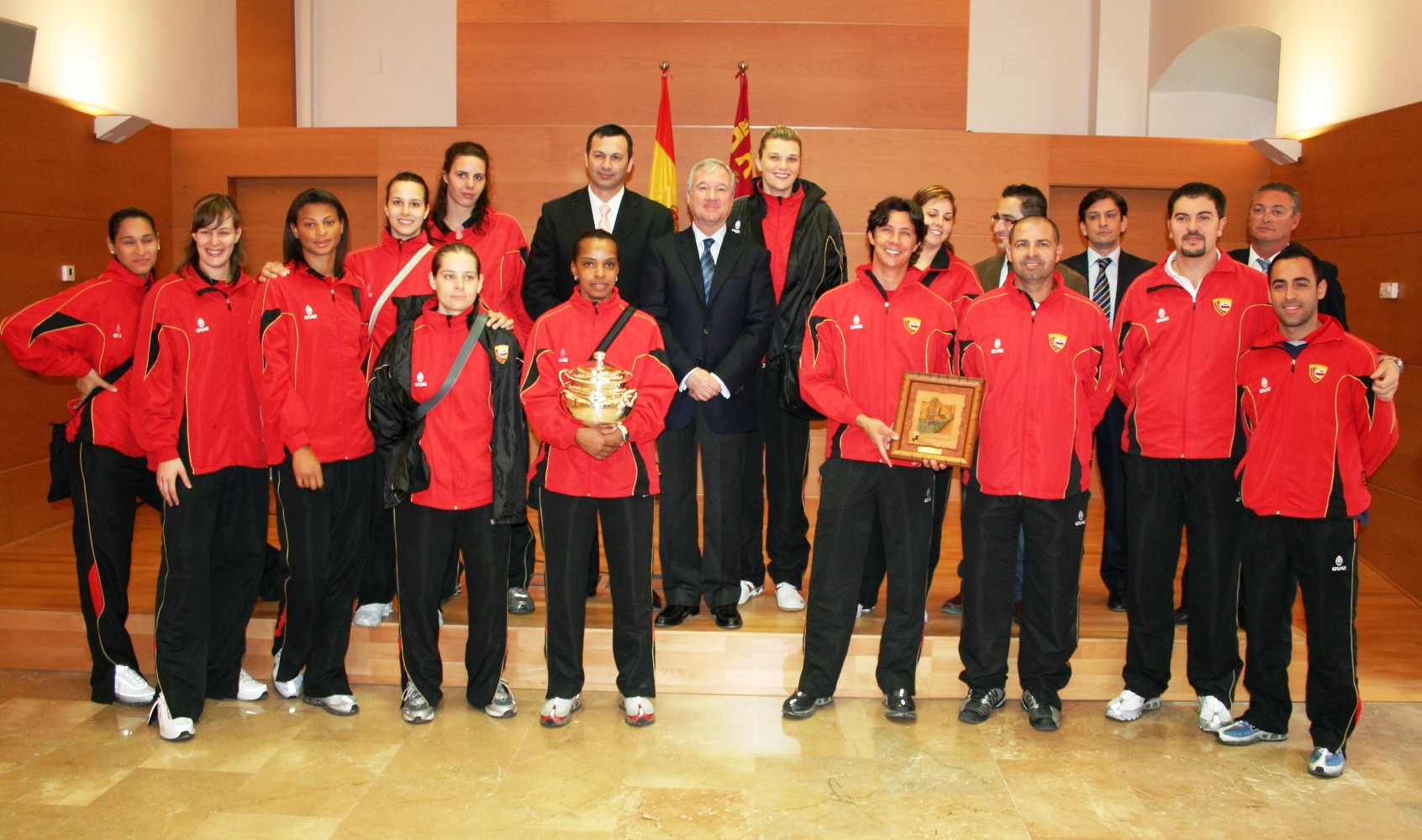 El presidente de la Comunidad Autónoma, Ramón Luis Valcárcel, acompañado por el director general de Deportes, Antonio Peñalver, ha recibido a las jugadoras, cuerpo técnico y directivos del Club Atlético Voleibol Murcia 2005, recientemente proclamado campeón de la trigésimo tercera edición de la Copa de la Reina, cuyo trofeo fue presentado al jefe del Ejecutivo regional.