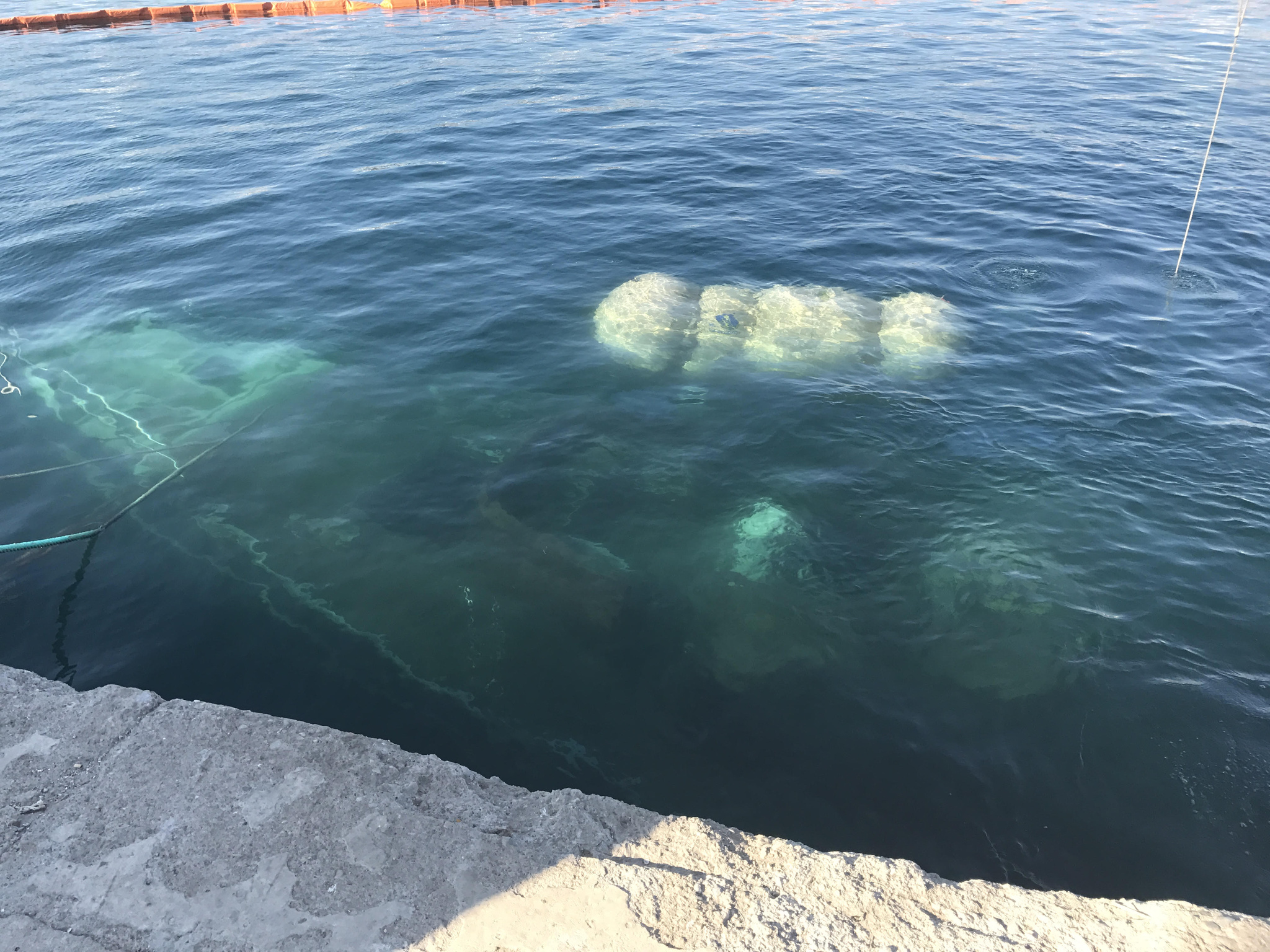Imagen del barco Penélope hundido en el puerto de Águilas.
