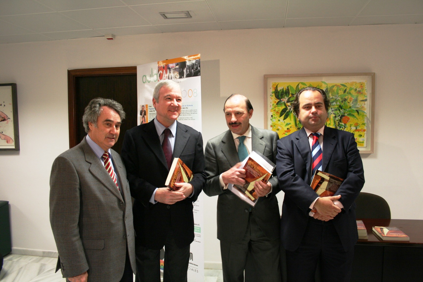 El presidente de la Comunidad Autónoma, Ramón Luis Valcárcel presidió hoy la presentación del libro 'Apuesta por España' junto a uno de sus tres autores, Vicente Martínez Pujalte, diputado nacional por el Partido Popular; Fernando Ferrando, editor de la obra; y Ángel Martínez, presidente del Consejo Territorial de Caja Mediterráneo. José Manuel García-Margallo y María Isabel Barreiro completan la nómina de autores de 'Apuesta por España'.