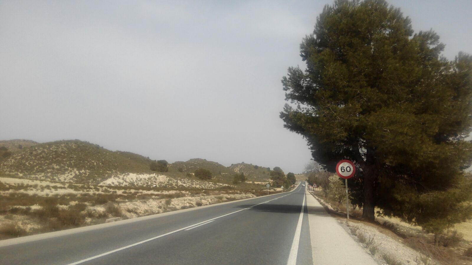Imagen de la carretera RM-714, que conecta Caravaca de la Cruz con Calasparra, Venta del Olivo y Jumilla, que será la primera vía de la red regional donde se instalarán guías sonoras longitudinales.