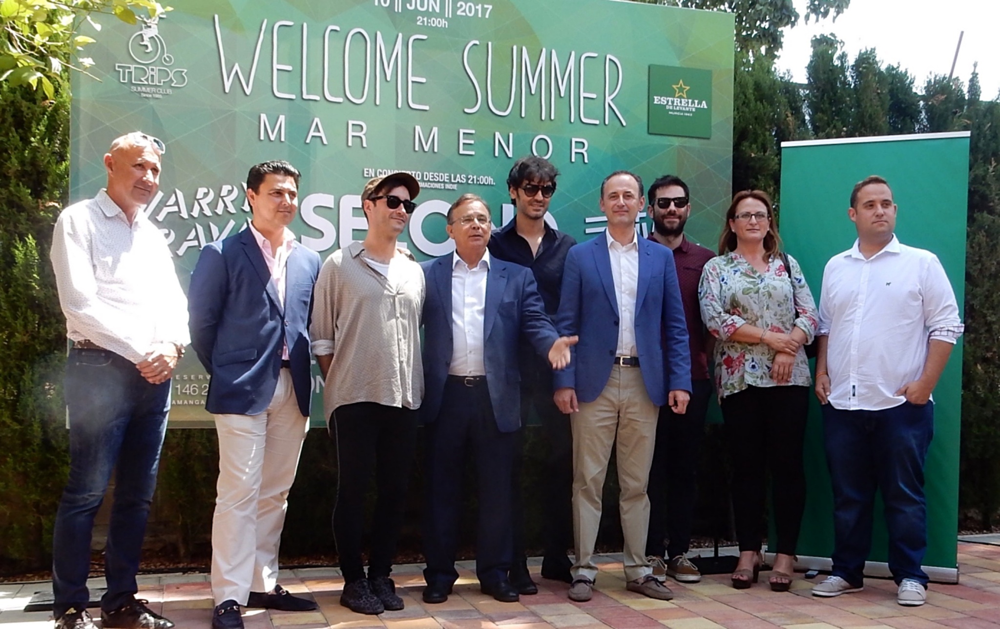 El consejero de Turismo, Cultura y Medio Ambiente, Javier Celdrán, asistió hoy a la presentación del festival ‘Welcome Summer Mar Menor 2017’, que tendrá lugar el próximo 10 de junio en La Manga, en la sala Trips Summer Club, contando con las actuaciones de Second, Viva Suecia y Varry Brava, y que ha sido organizado por Estrella de Levante y Trips Summer Club. En el acto participaron el director general de Estrella de Levante, Patricio Valverde; el responsable del Trips Summer Club de La Manga, Alfonso Torres; el alcalde de San Javier, José Miguel Luengo, y otros representantes de los ayuntamientos del Mar Menor.