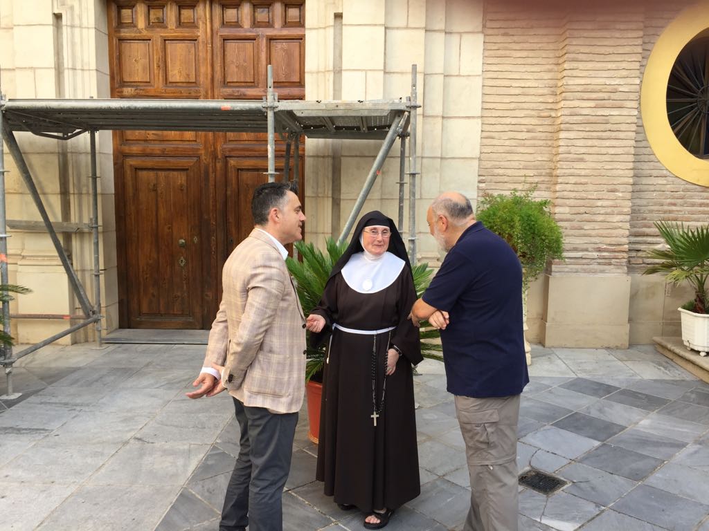 Visita del director general de Bienes Culturales, Juan Antonio Lorca (i), para supervisar la instalación de la estructura protectora en el Monasterio de Santa Clara la Real de Murcia