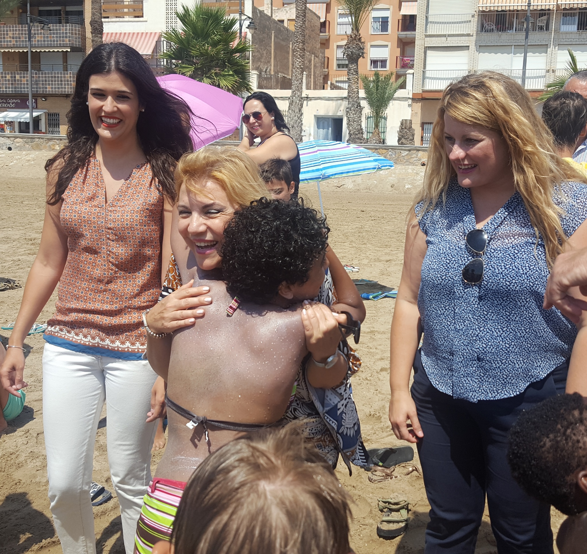 La consejera de Familia e Igualdad de Oportunidades, Violante Tomás, junto con la alcaldesa de Mazarrón, Alicia Jiménez, visita a los menores tutelados por la Comunidad Autónoma de la asociación Leyva, para el desarrollo de ocio y tiempo libre de personas con discapacidad intelectual, que pasan estancias de verano en el centro vacacional El Peñasco.