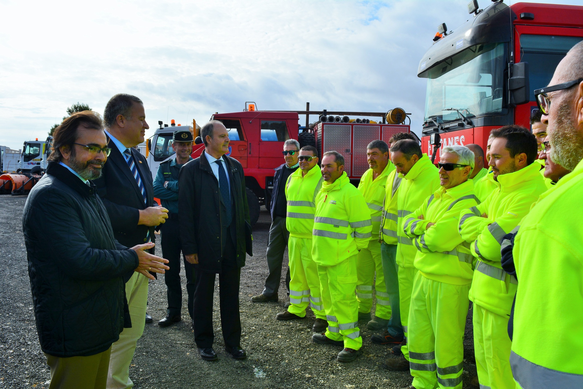 El consejero Pedro Rivera y el delegado Francisco Bernabé saludaron a los efectivos que componen el operativo que atenderás las indicencias por heladas o nieve en los más de 3.500 kilómetros de carreteras autonómicas y estatales de la Región de Murcia.