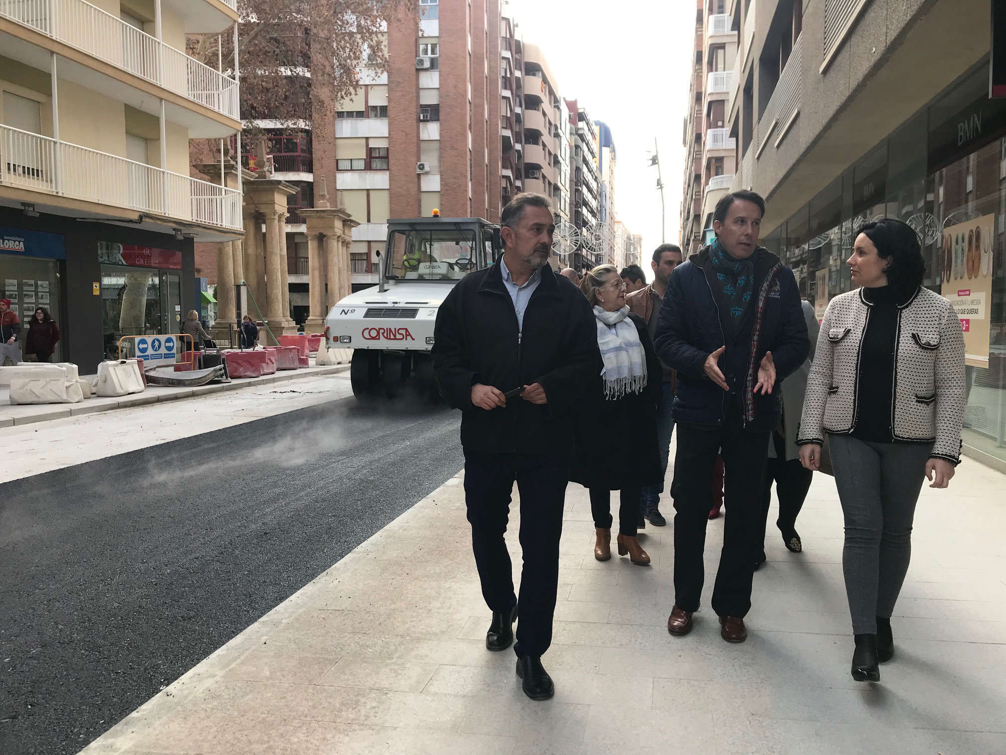 La directora general de Ordenación del Territorio, Arquitectura y Vivienda, Laura Sandoval, y el alcalde de Lorca, Fulgencio Gil, supervisaron hoy el avance de las obras de renovación urbana que se están ejecutando en la zona centro de la ciudad, y que tienen como principal objetivo la mejora integral de la arteria más importante del municipio, como es el caso de la avenida Juan Carlos I. Esta actuación incluye la remodelación y modernización de diferentes calles y plazas adyacentes, con una inversión superior a los 5 millones de euros. Sandoval destacó la “buena marcha en la ejecución de las obras, que incluso se ha adelantado a los plazos previstos inicialmente”, que ha permitido despejar la vía para mejorar la accesibilidad a los comercios de esta zona de la ciudad.