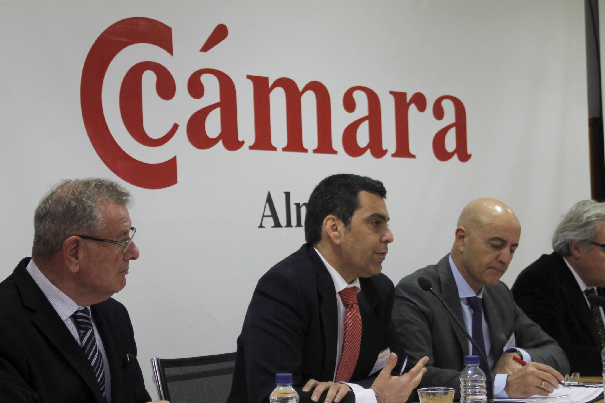 El director de Transportes, Costas y Puertos, José Ramón Díez de Revenga, durante su intervención en la mesa redonda sobre el desarrollo de la infraestructura del Sector Sur del Corredor Mediterráneo (Valencia-Algeciras), de la conferencia organizada por Ferrmed, en la Cámara de Comercio de Almería.