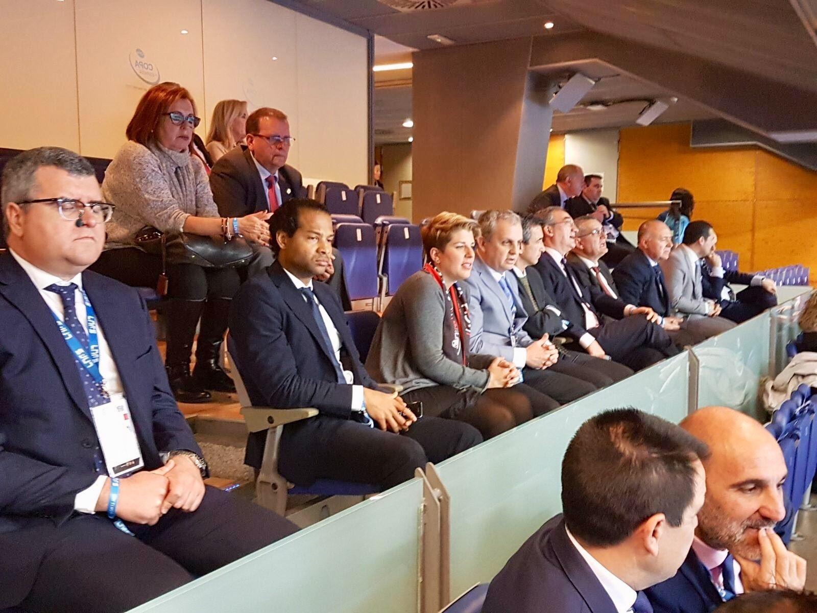 La consejera de Transparencia, Participación y Portavoz, Noelia Arroyo, asistió este viernes en Madrid al partido de cuartos de final de la Copa de España de fútbol sala entre el Plásticos Romero Cartagena FS y el Jaén Paraíso, que acabó 2-5 a favor del conjunto andaluz.