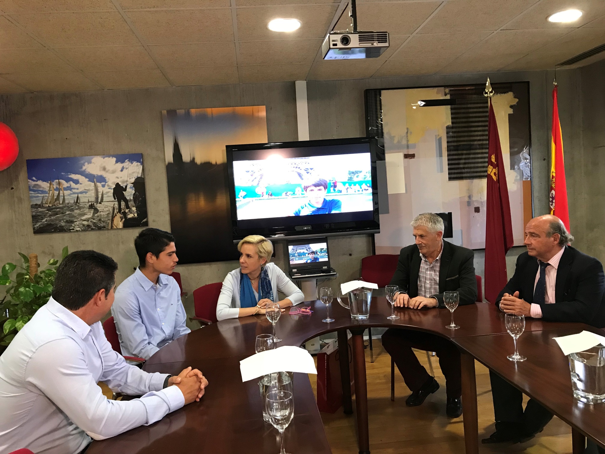 La consejera de Educación, Juventud y Deportes, Adela Martínez-Cachá, recibió hoy al tenista murciano Carlos Alcaraz, que sumó su primer punto ATP con apenas 14 años el pasado mes de febrero y se ha convertido en el segundo español más joven en conseguir este hito al superar a Rafael Nadal, actual número 1 del mundo, y quedar sólo por detrás de Nicolás Álvarez Varona.
