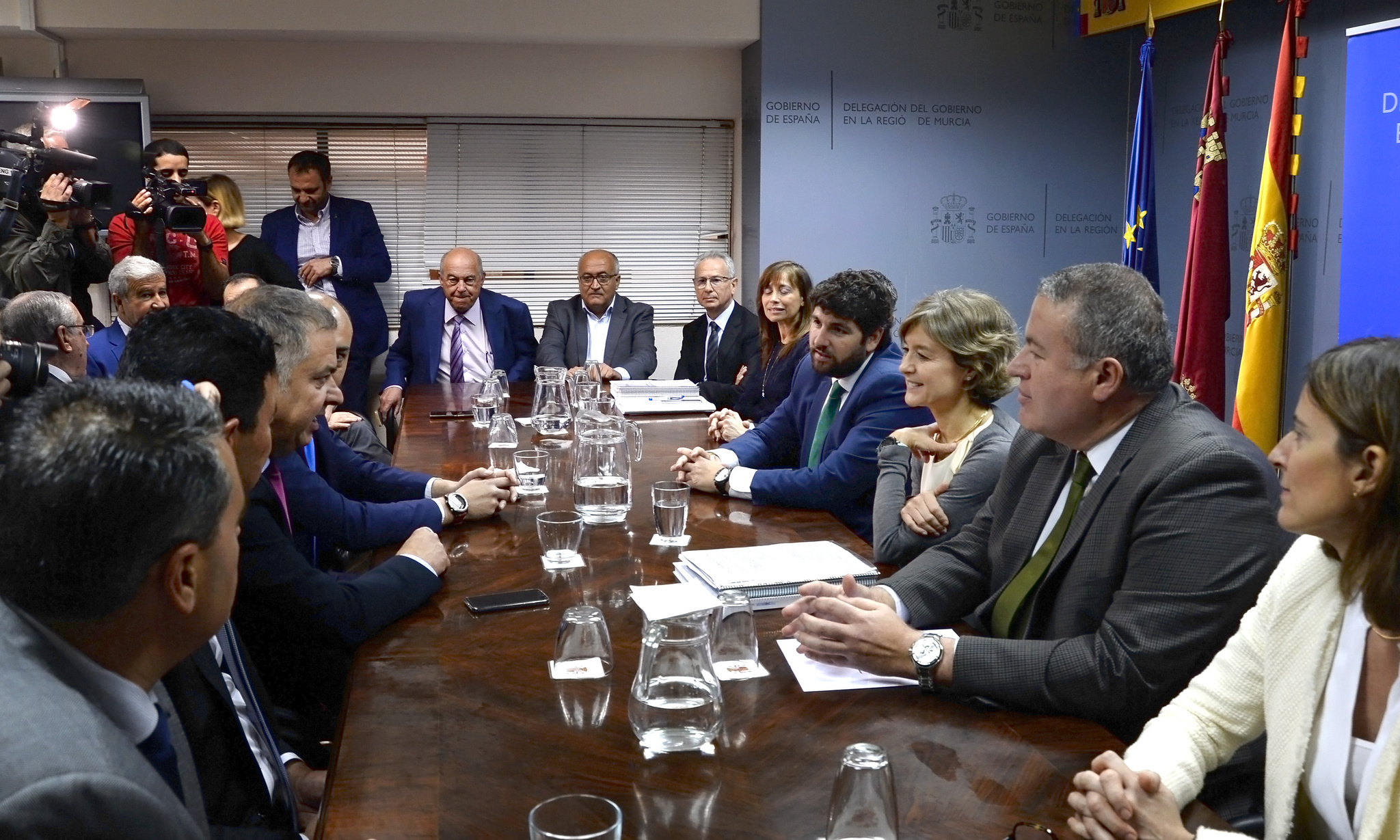 El presidente de la Comunidad, Fernando López Miras, y la ministra Isabel García Tejerina mantienen un encuentro con representantes del sector agroalimentario de la Región de Murcia.