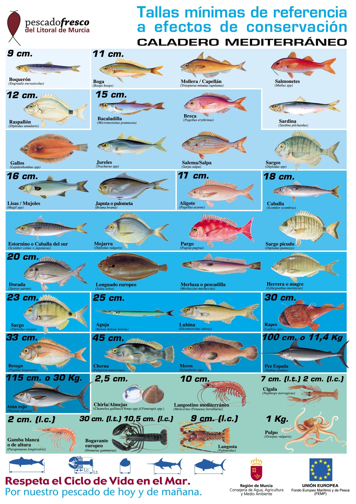 Cartel de tallas mínimas de referencia a efectos de conservación