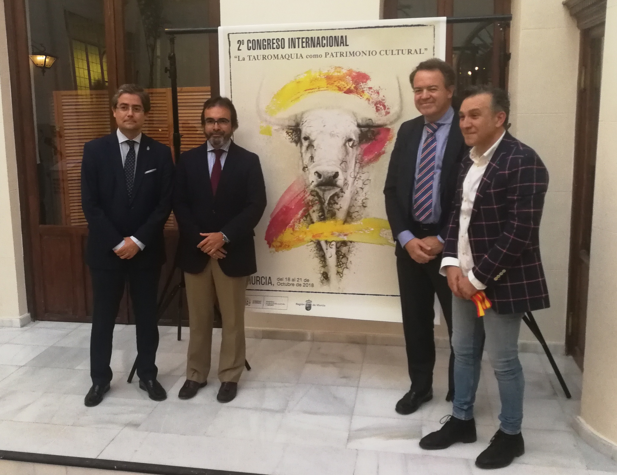 El artista ceheginero Nicolás de Maya es el autor del cartel que anuncia el II Congreso Internacional de Tauromaquia, que tendrá lugar en Murcia en los últimos días del mes de octubre y que convocará a especialistas, profesionales, empresarios, críticos y aficionados, poniendo el acento en el mundo del toro como patrimonio cultural. Intervinieron en el acto de presentación, celebrado en el Real Casino de Murcia, el propio artista; el consejero de Presidencia, Pedro Rivera, el director general de Bellas Artes y Patrimonio Cultural del Ministerio de Educación, Cultura y Deportes, Luis Lafuente, y el concejal de Cultura del Ayuntamiento de Murcia, Jesús Pacheco.