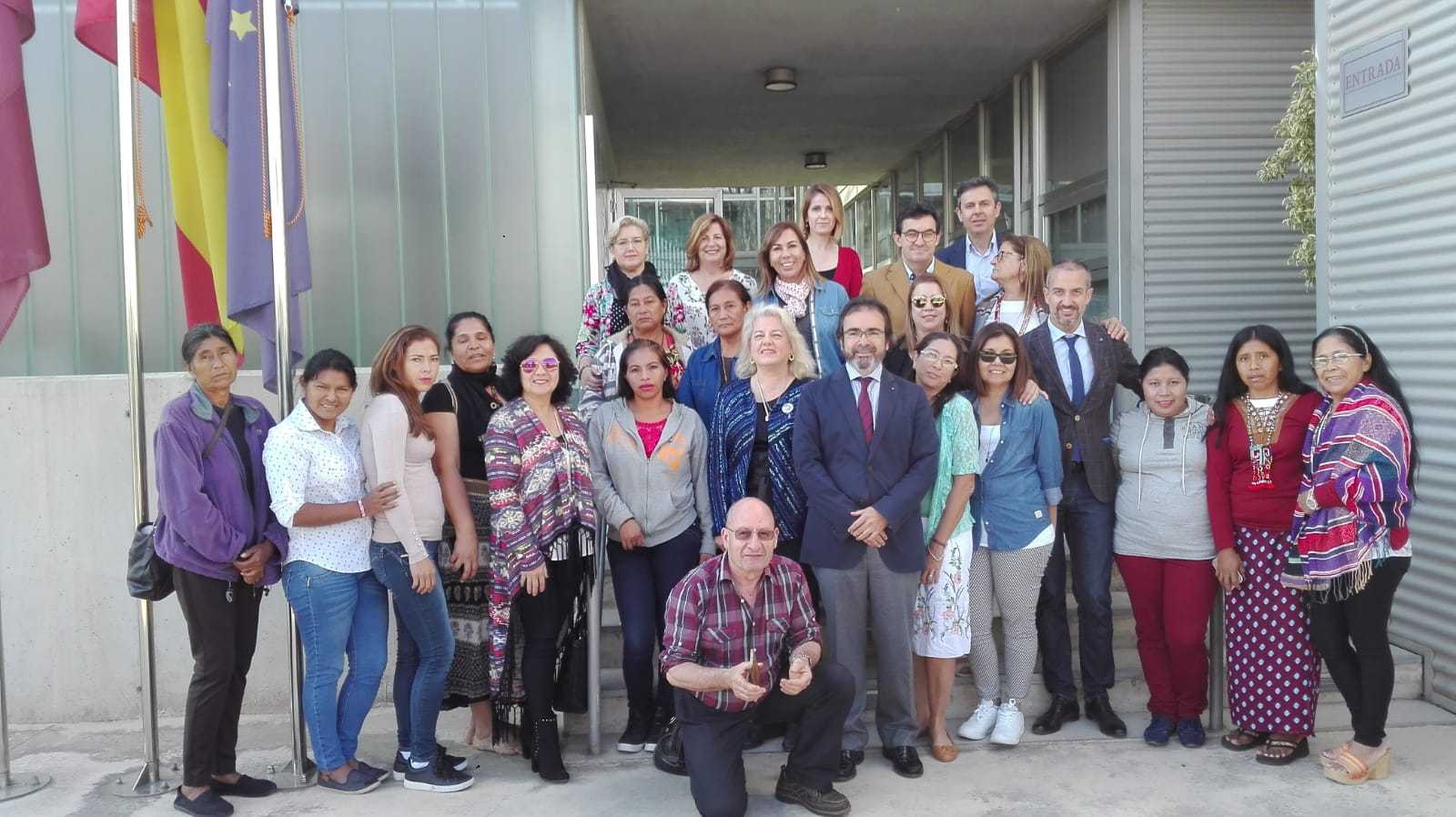 El consejero de Presidencia y la delegación de mujeres indígenas paraguayas, durante la visita a las instalaciones del Boletín Oficial de la Región de Murcia