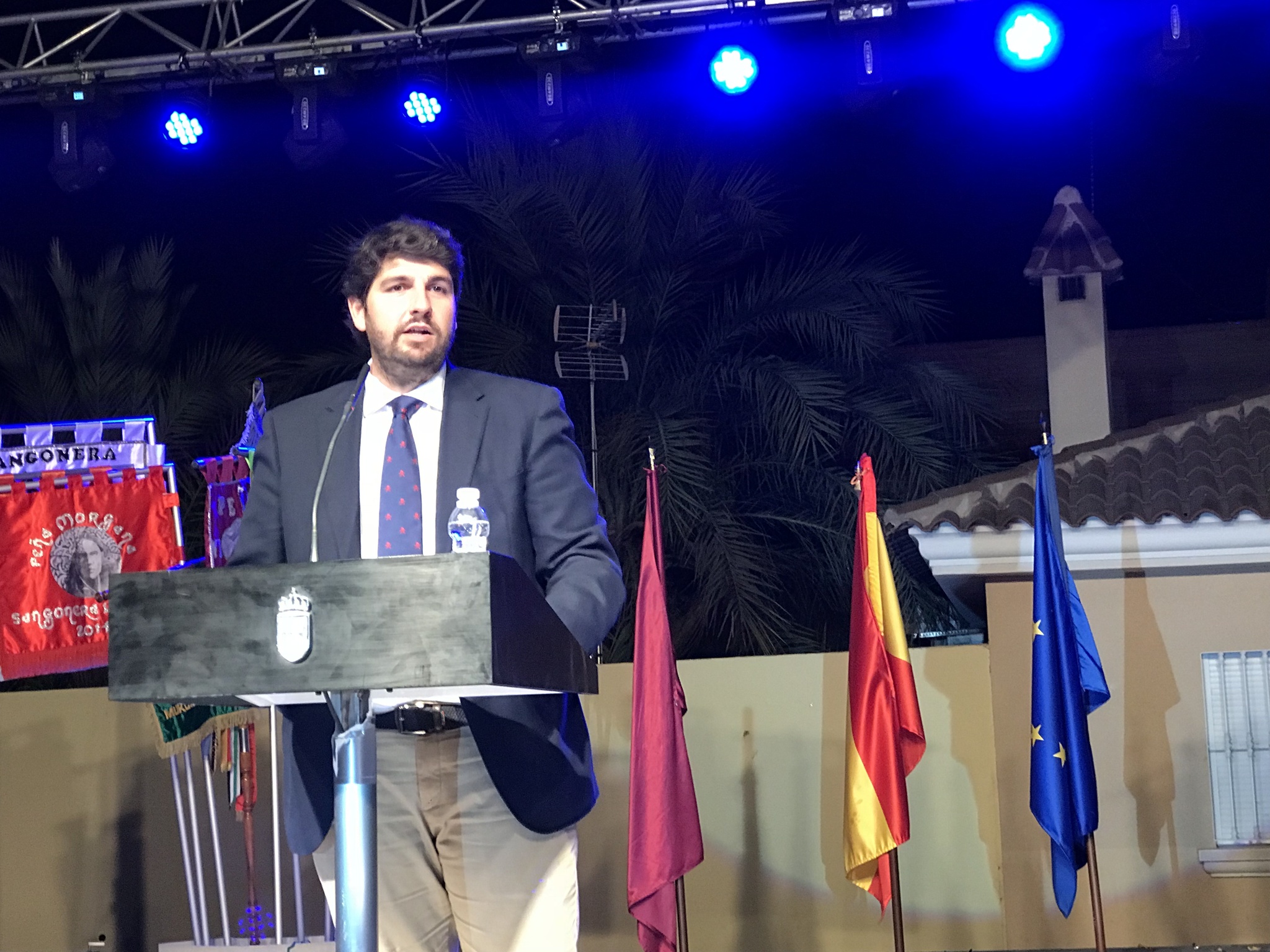 Durante la lectura de su pregón, el presidente de la Comunidad reconoció sentirse “como un habitante más de Sangonera la Verde y un hombre orgulloso de la amplia historia, del magnífico presente y del gran futuro de esta tierra”.