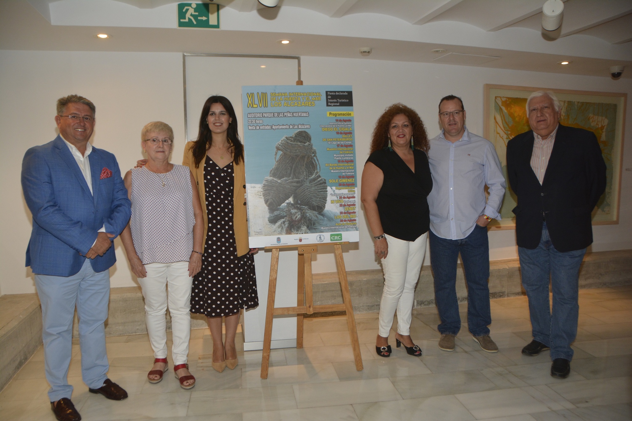 La consejera de Turismo y Cultura, Miriam Guardiola; el alcalde de Los Alcázares, Anastasio Bastida, el director de la Semana, Juan García Serrano, y el pregonero, Pablo González-Conejero, presentaron hoy la XLVII edición de la Semana Internacional de la Huerta y el Mar que se celebrará en Los Alcázares del 14 al 24 agosto.