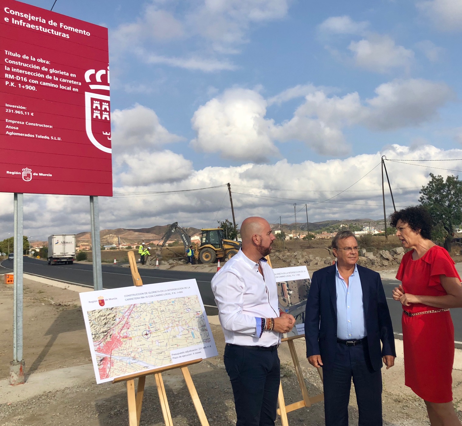 El consejero Patricio Valverde y la alcaldesa de Puerto Lumbreras, María Ángeles Túnez, supervisan el inicio de las obras de construcción de una nueva glorieta en la carretera regional RM-D16, que une la localidad con las pedanías de El Esparragal y la Estación del Puerto