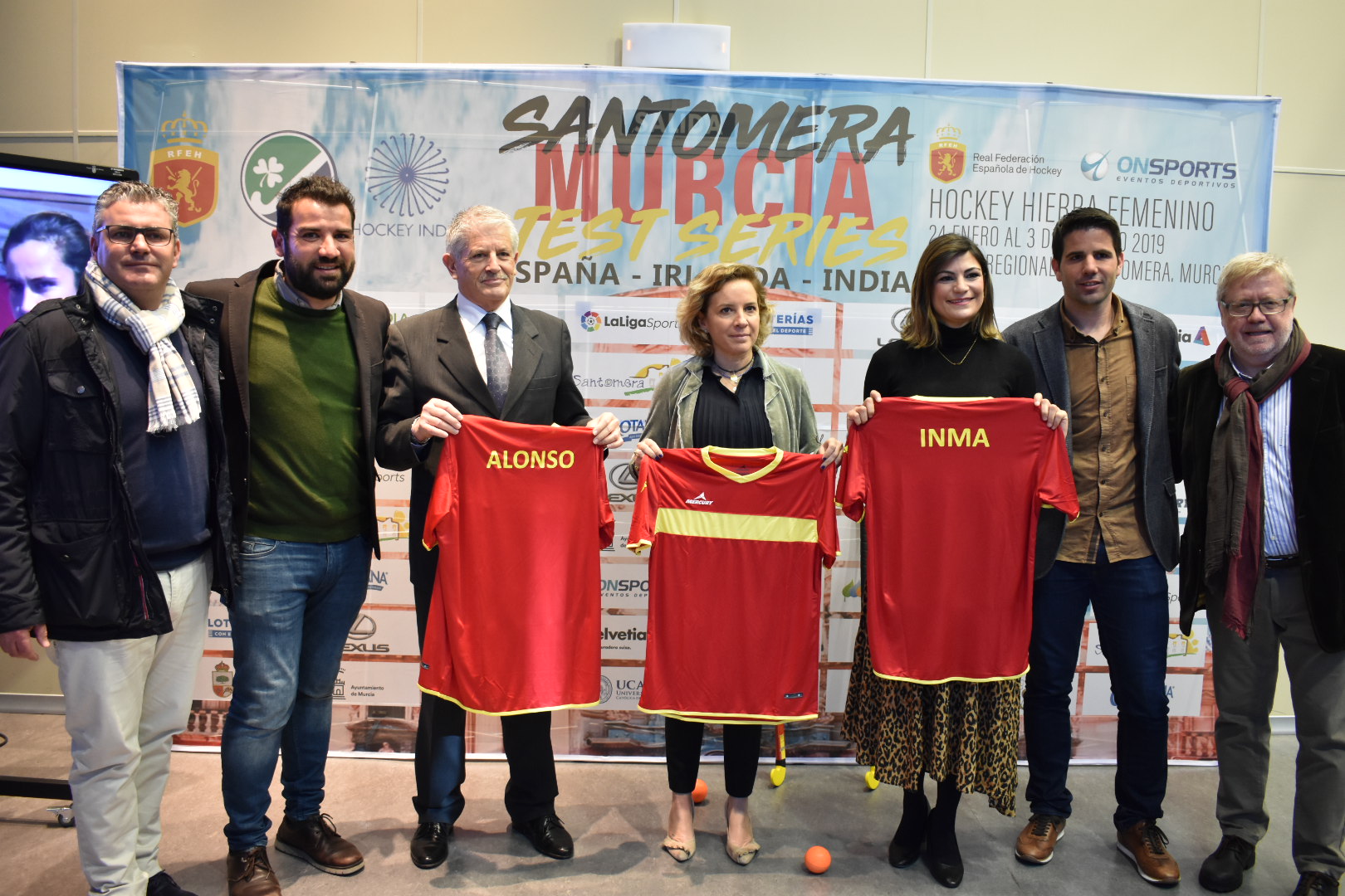 La consejera de Educación, Juventud y Deportes, Adela Martínez-Cachá, presenta el torneo de hockey sobre hierba femenino 'International Test Series', que se celebra en Santomera del 26 de enero al 3 de febrero